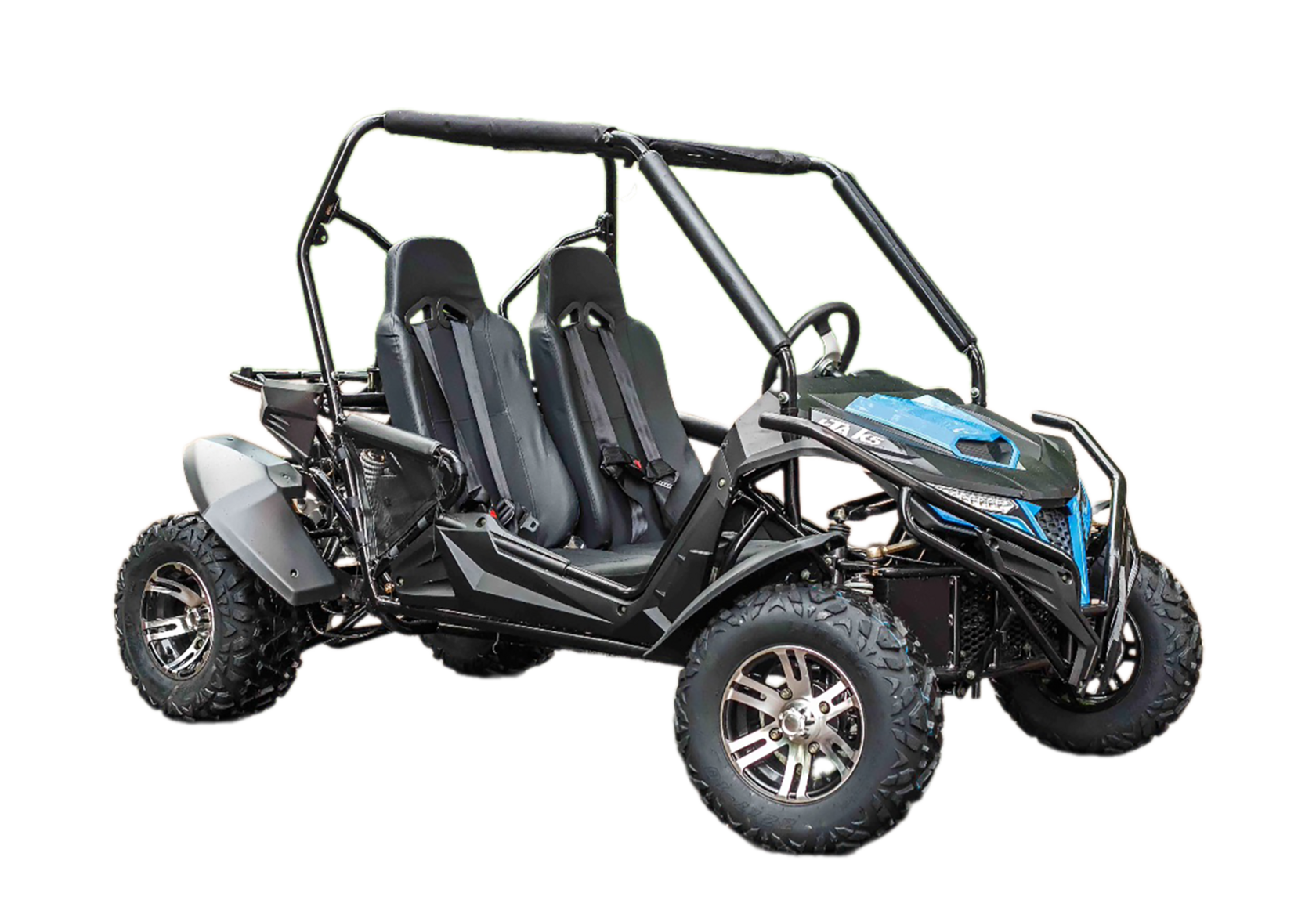 Новинка 2020 года - малокубатурный багги К5! Незабываемый активный отдых обеспечен всей семье.Уникальный, современный дизайн порадует глаз. Малый вес, габариты и фантастическая управляемость даст больше возможностей для динамичных прохватов по сухому грунту. Дорожный просвет 26см и колеса 10 радиуса позволят проверить себя и технику на бездорожье. Ватерлиния на уровне 30см открывает дорогу к водным преградам. А настраиваемая подвеска и шарнирное крепление подрамника сделает ваш отдых еще более приятным, даже если вы отправитесь в многочасовое путешествие.Усиленный каркас обеспечит большую безопасность, дополнительная защита ног лучше защитит от грязи, тканевая крыша даже в базовой комплектации сохранит голову в чистоте. В минибагги с двигателем 180 куб.см будет комфортно и детям от 10-12 лет и взрослым. Комфортно расположиться в багги может человек с ростом до 195 см.Особенности комплектации: