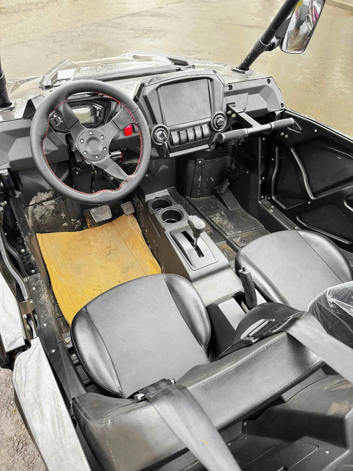 Двухместный баггиГотовы покорять бездорожье с комфортом? Наш двухместный багги – это идеальный спутник для охоты, рыбалки, экспедиций и экстремальных приключений. С мощным V-образным двигателем (799 см³, 59 л.с.) и жидкостным охлаждением он легко справляется с грязью, песком и снегом, работая на доступном АИ-92.Превосходная проходимость обеспечивается вариаторной трансмиссией с возможностью переключения между 2WD и 4WD, а также передним дифференциалом для лучшего сцепления. Независимая подвеска с двойными А-образными рычагами и ходом 110 мм (спереди) / 95 мм (сзади) гарантирует плавность хода даже на сложном рельефе. Опционально доступны азотные амортизаторы для еще большей выносливости.26-дюймовые шины (26x8 R14) с легкосплавными дисками и гидравлическими тормозами обеспечивают уверенное движение и мгновенную остановку. Клиренс 29 см позволяет преодолевать серьезные препятствия, а электрическая лебедка на 1600 кг выручит в самых сложных ситуациях.Комфорт и управляемость:Электроусилитель руля (EPS) – легкое и точное управление.