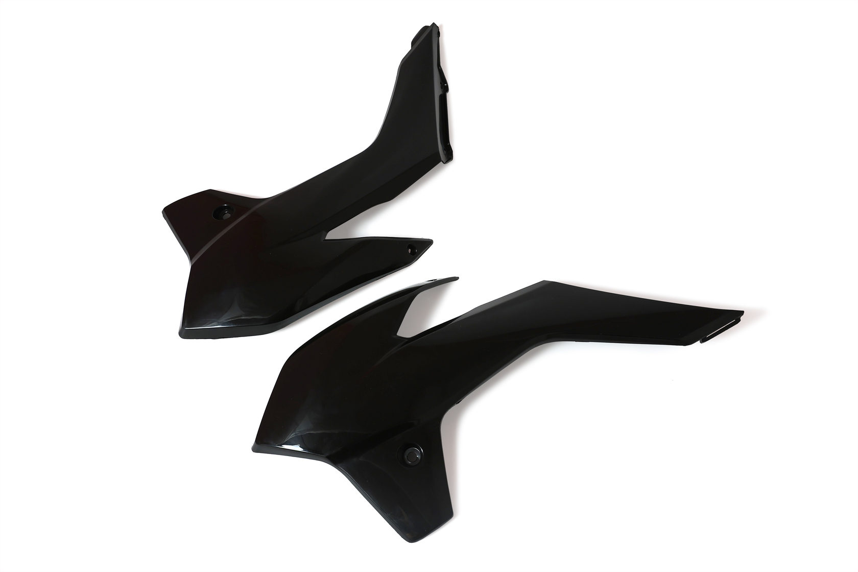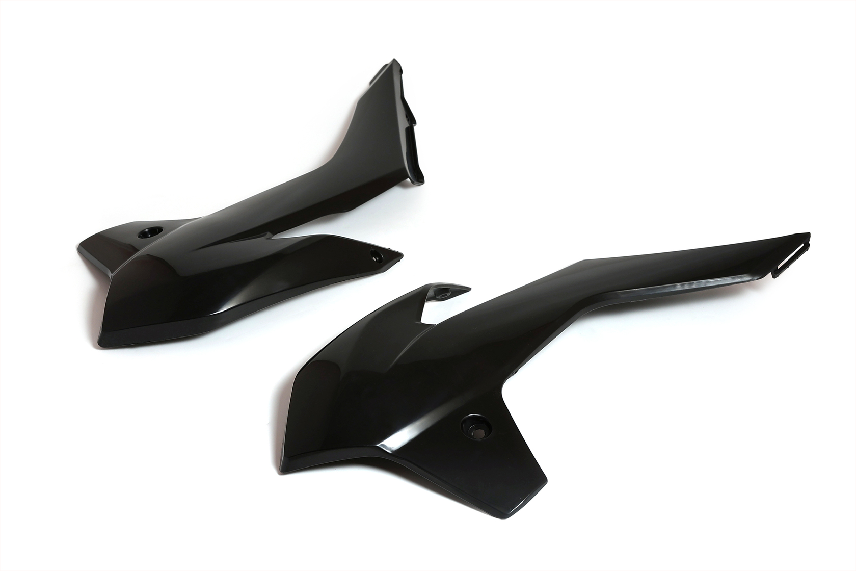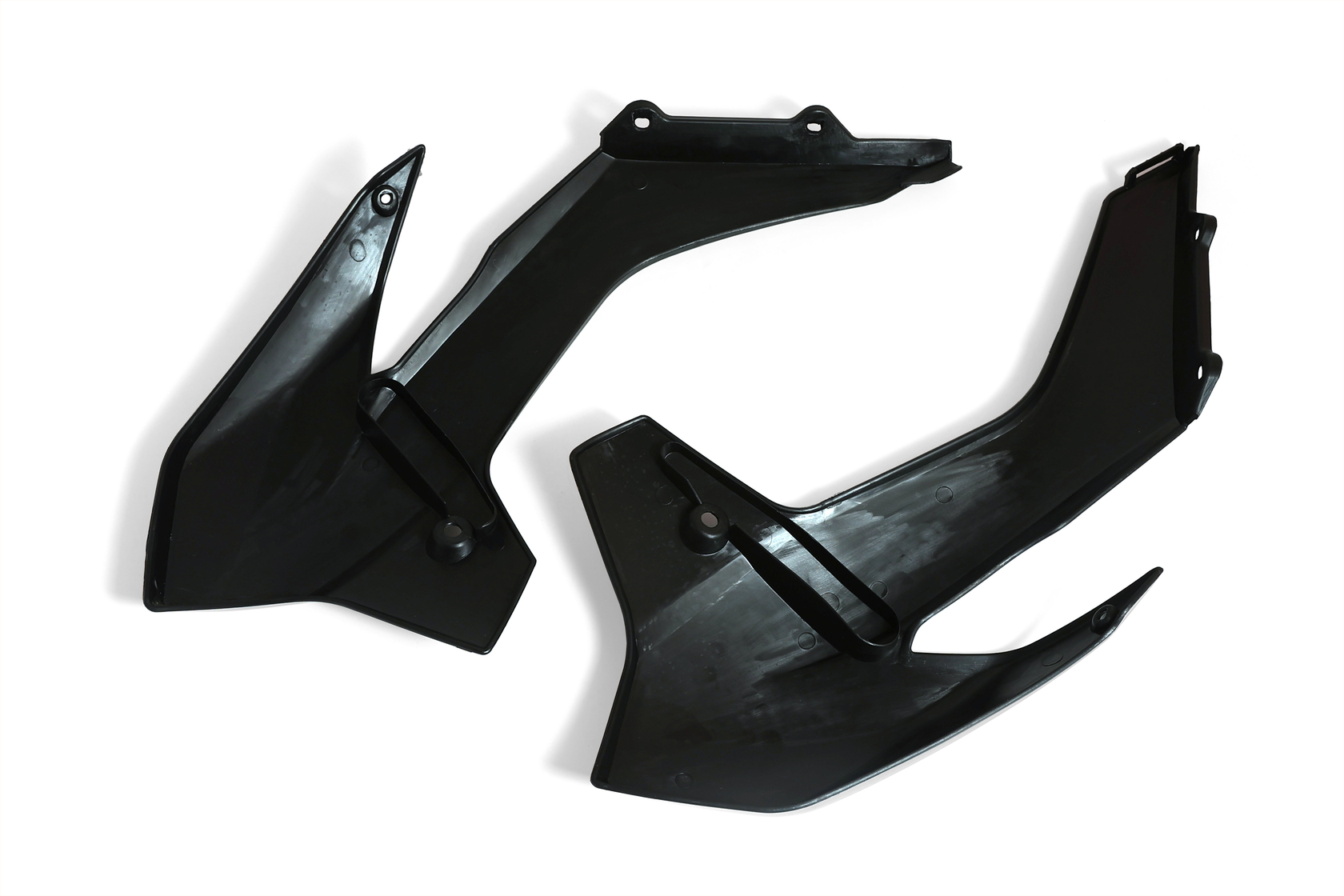 Пара чёрных передних обтекателей для мотоциклов KTM SX85 2013-2016 года, а также аналогичных китайских моделей на раме K5 (Kayo K1, BRZ X5 и др.). Изготовлены из высококачественного, ударопрочного пластика по типу KTM SX85. Полный аналог оригинальной детали KTM с артикулом 4710805400004. Надёжно защищают переднюю часть байка, придают ему стильный внешний вид и легко устанавливаются на штатные крепления без доработок.