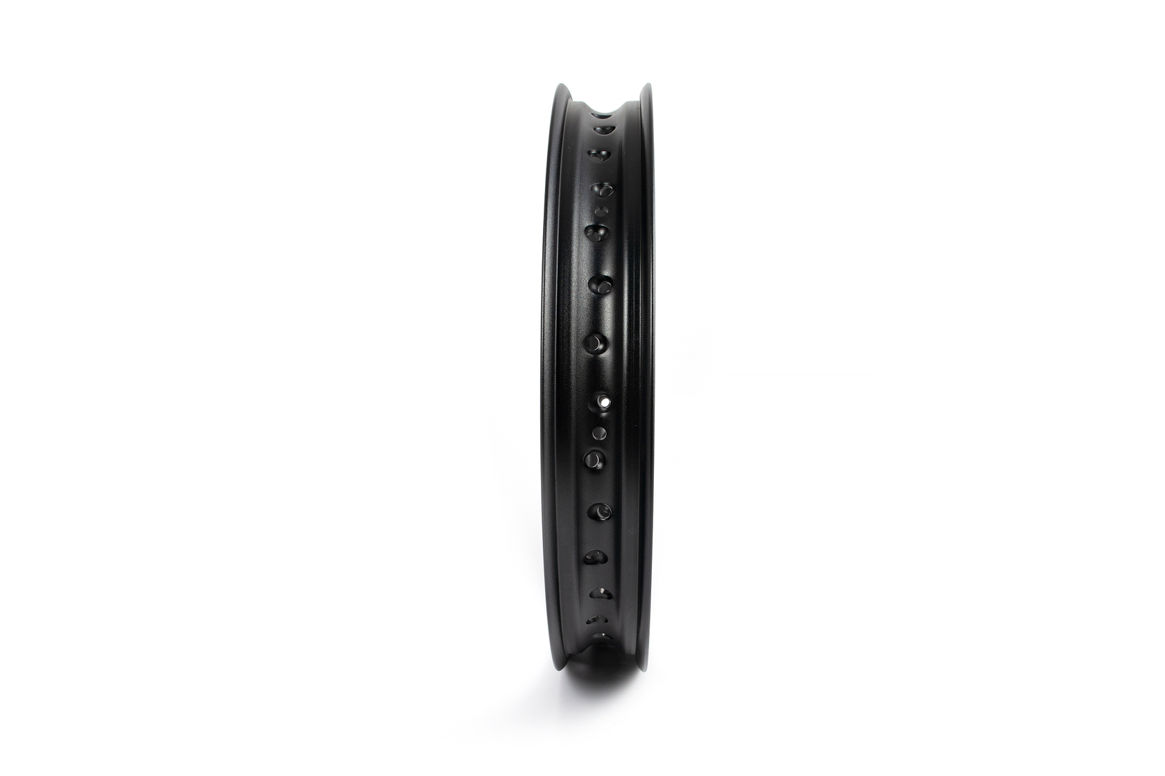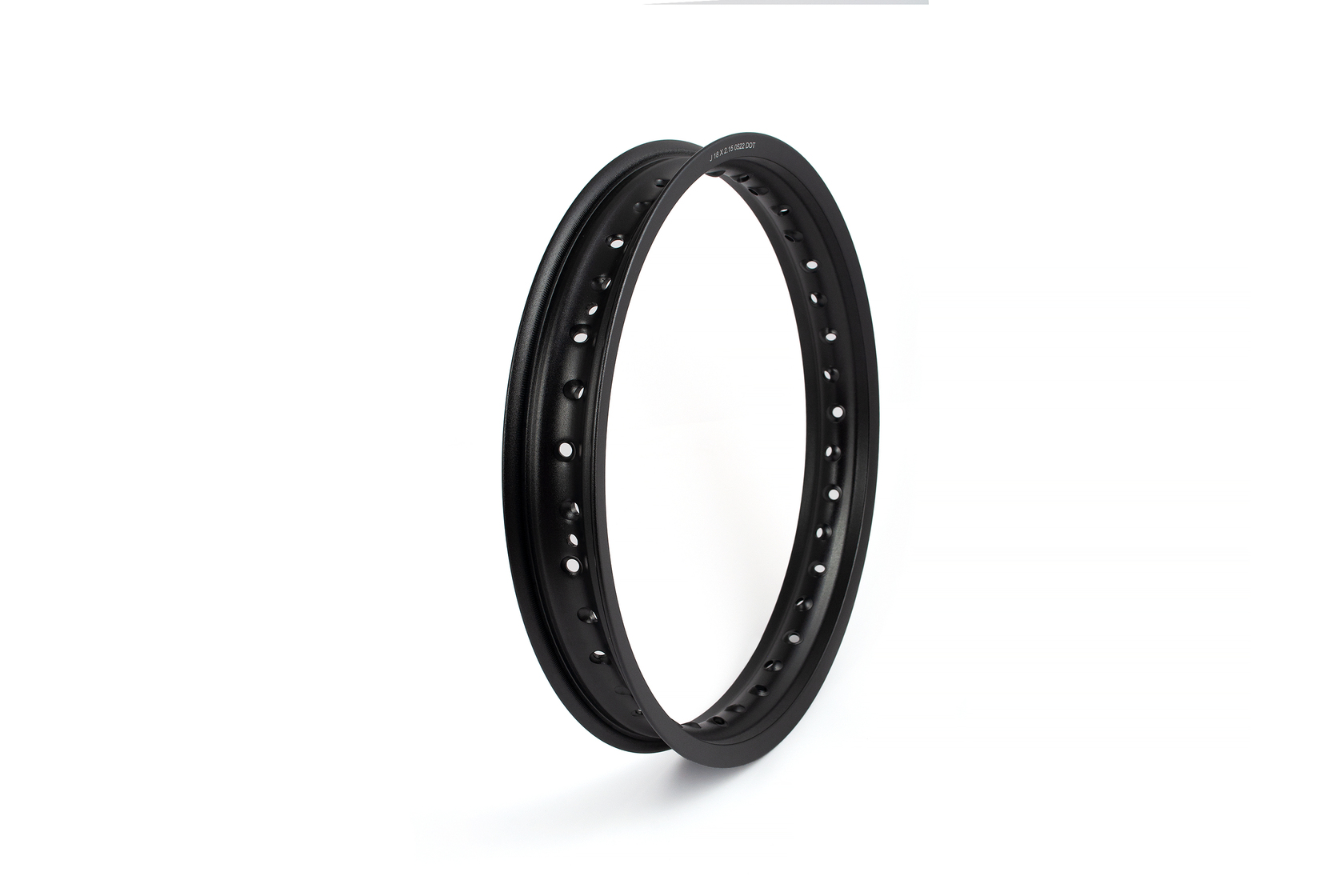 Алюминиевый обод заднего колеса размером 18x2.15 для эндуро и кроссовых мотоциклов. Отличается малым весом, высокой прочностью и устойчивостью к коррозии. Подходит для установки на колесо с 36 спицами, комплектуется отверстием под буксатор для уверенной эксплуатации в жёстких условиях. Черное матовое покрытие придает стильный современный вид и дополнительно защищает обод.