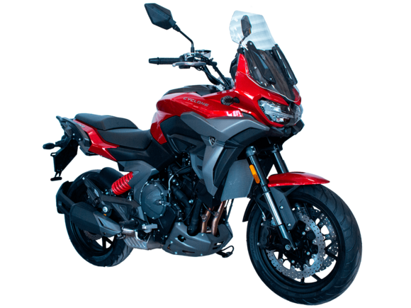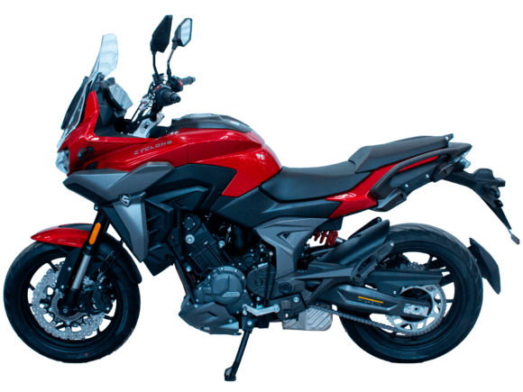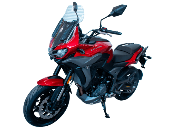 CYCLONE RX6 (SR650) – туристический эндуро для покорения самых непростых и протяжённых маршрутов. Он обладает агрессивным и современным дизайном, который выгодно выделяет его из всех остальных мотоциклов в своём классе. Мотоцикл дарит своему владельцу абсолютную свободу передвижения, позволяя долго и быстро ехать по шоссе, а при желании съезжать на такие дороги, по которым не проедет ни один дорожный мотоцикл. Небольшие габариты этого байка позволяют с успехом использовать его, как повседневный дорожный мотоцикл.Данная модель является самой крупнокубатурной в модельном ряде компании CYCLONE. Рядный двухцилиндровый четырёхтактный двигатель объёмом 650 см3 выдаёт мощность в 71 л.с. на 8500 об/мин. Максимальный крутящий момент достигается на 7000 об/мин и составляет 62 Н·м. Инжекторный впрыск топлива с блоком управления BOSCH увеличивает топливную экономичность, а также позволяет добиться высокой приёмистости и неприхотливости агрегата. Жидкостная система охлаждения не допустит перегрева двигателя даже при самом агрессивном вождении. На мотоцикл установлена 6-ступенчатая механическая коробка передач.Максимальная скорость мотоцикла составляет 180 км/ч.Модель оснащена литыми алюминиевыми дисками диаметром 17 дюймов. Колёса обуты в бескамерные покрышки от легендарной фирмы PIRELLI. С неровностями дороги эффективно справляются компоненты производства культовой японской компании KYB – телескопическая вилка перевёрнутого типа спереди и маятник с моноамортизатором сзади. Ход передней подвески составляет 130 мм, задней – 51 мм. Оба компонента подвески являются регулируемыми. Эффективное и безопасное замедление с любых скоростей обеспечивают гидравлические дисковые тормоза с двухканальной системой ABS спереди и сзади. Тормозные системы произведены известной испанской фирмой J.JUAN (входящей в легендарный холдинг BREMBO).Мотоцикл отличает хорошо продуманная компоновка с высоко расположенным радиатором. Высота 820 мм по седлу позволяет чувствовать себя комфортно даже райдерам небольшого роста. На данной модели установлена металлическая защита выхлопной системы и масляного фильтра. Под пассажирским сиденьем размещён небольшой, но крайне полезный набор инструментов.RX6 (SR650) оснащён бортовым компьютером с информативным цветным дисплеем и кнопками управления на руле, а также двумя штатными видеорегистраторами спереди и сзади. Из других приятных мелочей в допоборудовании мотоцикла стоит выделить регулируемое при помощи кнопки ветровое стекло, датчики давления в шинах, подсветку пультов, бесключевой доступ и 2 USB-порта.Клиренс мотоцикла составляет 165 мм. Объём топливного бака – 20 л. Снаряжённая масса – 245 кг.Мотоцикл сочетает в себе отличные технические характеристики, богатое оснащение, комфорт и надёжность, что позволяет вам ощутить настоящую свободу, отправившись на нём в любое путешествие.