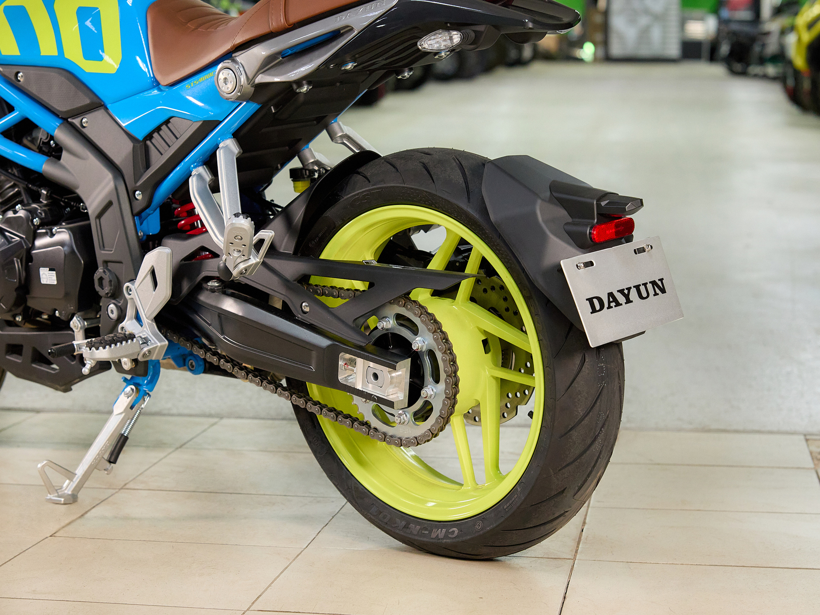 DAYUN DY400-F — мощный, динамичный и уверенный на любой дорогеЕсли вы ищете мотоцикл, который сочетает в себе силу, контроль и стиль, то DAYUN DY400-F — ваш идеальный выбор. Этот аппарат создан для тех, кто ценит мощь под капотом и надежность в каждой детали. Готов покорять городские магистрали и загородные трассы, оставляя позади лишь восхищенные взгляды.Двухцилиндровый мотор с впечатляющей мощностью: 400-кубовый двигатель с жидкостным охлаждением выдает 42 л.с. и 35 Нм крутящего момента, обеспечивая резкий разгон и уверенную динамику на любых оборотах. Система впрыска Bosch EFI гарантирует стабильную работу, экономичный расход и мгновенный отклик на газ. Максимальная безопасность и контроль: Мощные 300-мм плавающие диски спереди и 240-мм диск сзади, дополненные ABS, обеспечивают уверенное торможение в любых условиях. Перевернутая телескопическая вилка и регулируемый моноамортизатор делают управление точным, а ход — плавным даже на неровных дорогах. Эргономика и комфорт для дальних поездок: Удобная посадка с высотой 780 мм, широкий руль и литые диски с шинами 110/70-17 спереди и 150/60-17 сзади обеспечивают отличную устойчивость. 16-литровый бак и продуманная компоновка делают DY400-F отличным спутником как для ежедневных поездок, так и для длительных путешествий.Не упустите шанс стать владельцем этого мощного и стильного мотоцикла — звоните прямо сейчас и испытайте его в деле!