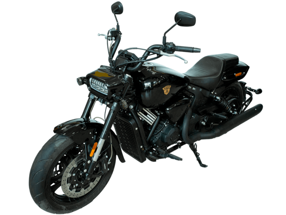 GROZA YL800 – великолепный круизёр, который подойдёт как для повседневной городской езды, так и для комфортного перемещения на длинные дистанции. Его дизайн исполнен в классическом стиле, соответствующем всем канонам данного типа мотоциклов.Двухцилиндровый V-образный двигатель объёмом 800 см3 мощностью 61 л.с. при высоких показателях динамики и отличном крутящем моменте способен разгонять аппарат до 180 км/ч. Инжекторный впрыск топлива с инжектором DELPHI увеличивает топливную экономичность, а также позволяет добиться высокой приёмистости и неприхотливости агрегата. Привод на ведущее колесо осуществляется ремнём знаменитой марки USA Gates. Жидкостная система охлаждения не допустит перегрева мотора даже при самом агрессивном вождении.Аппарат имеет 6-ступенчатую механическую коробку передач с классической схемой “1-N-2-3-4-5-6”. На мотоцикл установлены литые алюминиевые диски диаметром 17 дюймов. Ширина передней покрышки – 140 мм, задней – 200 мм. С неровностями дороги эффективно справляются телескопическая вилка перевёрнутого типа спереди и маятник с двумя газонаполненными амортизаторами сзади. Подвеска имеет 7 ступеней регулировки, что обеспечивает лёгкую перестройку на различные режимы езды. Для всего класса круизёров такая опция – большая редкость. Эффективное и безопасное замедление с любых скоростей обеспечивают гидравлические дисковые тормоза спереди и сзади от компании NISSIN.Аппарат оснащён своеобразной и очень привлекательной по дизайну светодиодной оптикой, а также бортовым компьютером и ярким и информативным дисплеем.Мотоцикл сочетает в себе отличные технические характеристики, богатое оснащение, комфорт и надёжность, что позволяет вам ощутить настоящую свободу на любой дороге.