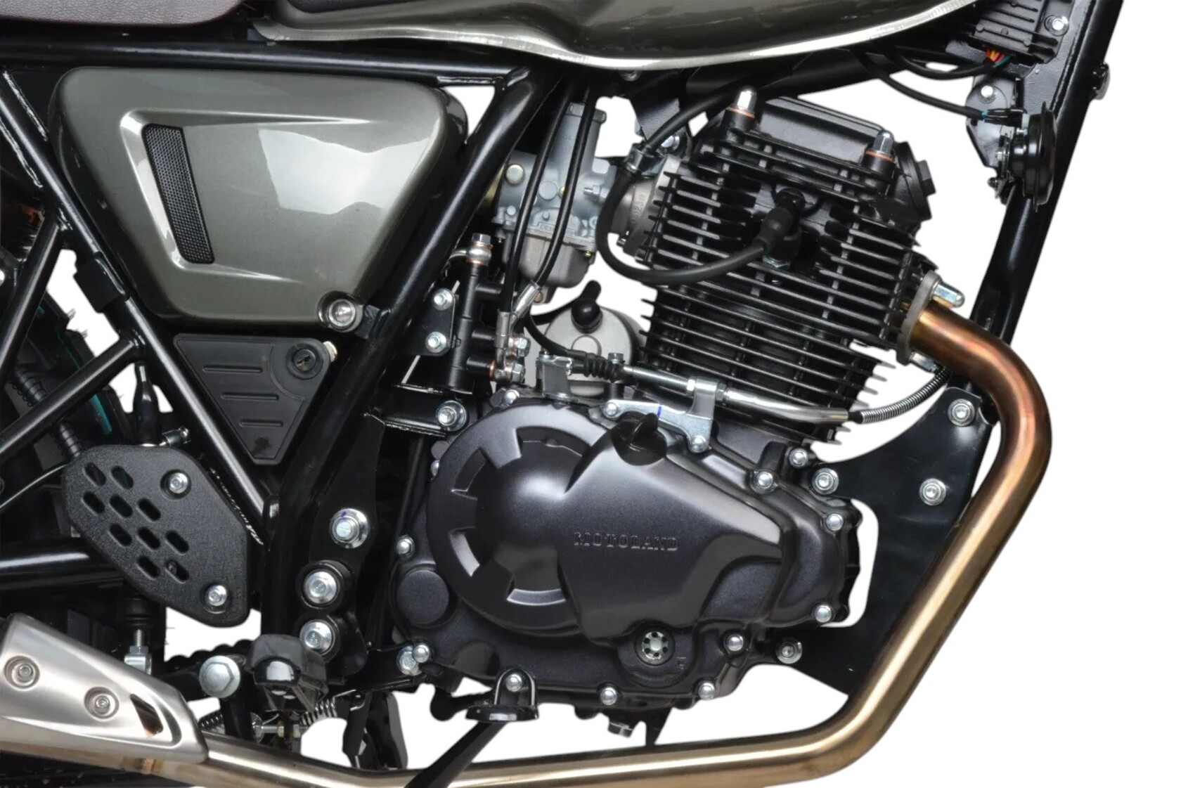 TEXAS 300 PRO. Дизайн мотоцикла выполнен в ретро стиле, укомплектованный обновленная LED-фарой, приборной панелью, USB-зарядкой, креплением номерного знака, резиновыми накладками на бак, обновленным глушителем из нержавеющей стали и прочими канонами современности. Классическая посадка, мягкое кожаное сиденье и литые колеса – всё это способствует комфортному управлению по асфальтированным дорогам и пересеченной местности.Мотоцикл оснащен двигателем 175FMN (баланс. вал), с 6 ступенчатой КПП, мощностью 25 л.с. Установлен усиленный толстостенный руль.Ходовая часть состоит из телескопической длинноходной вилки и задними амортизаторами с расширительными бачками.Топливный бак в 11 литров и экономичный мотор с расходом в 2,5 л./100км. Позволяют проезжать более 400 километров без дозаправки.Вес мотоцикла / вес в коробке 133 кг / 158 кг
