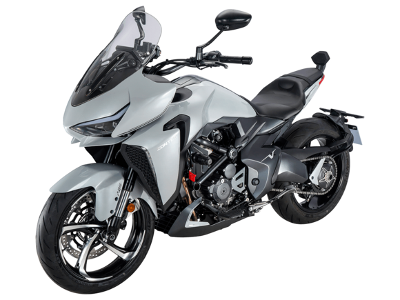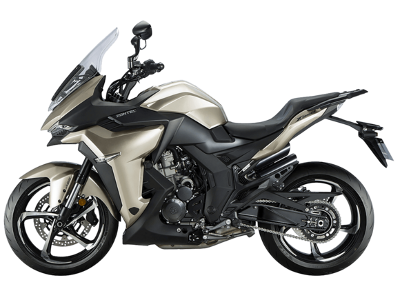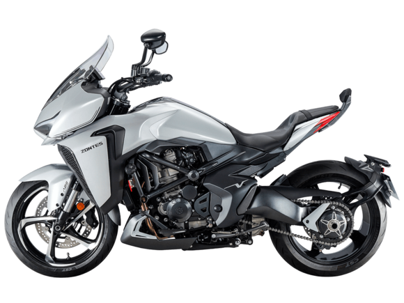 Мотоцикл ZONTES ZT350-X – турист со стремительным современным дизайном. Хорошо подходит как для повседневных поездок по городу, так и для покорения дальних маршрутов.Силовая установка представлена одноцилиндровым 4-тактным двигателем ZT184MP с 4 клапанами и 2 верхними распредвалами. Двигатель имеет объём 348 см³ и обеспечивает мощность в 39 л.с. Оснащён инжектором BOSCH и системой жидкостного охлаждения. Механическая коробка передач имеет 6 ступеней и схему 1-N-2-3-4-5-6. Запуск двигателя осуществляется с помощью бесключевого доступа.Ёмкость топливного бака 19 литров.Колёса представлены литыми алюминиевыми дисками диаметром 17 дюймов. На мотоцикл установлены датчики давления в шинах, показатели от которых выводятся на приборную панель. Для подвески спереди используется телескопическая вилка, сзади – моноамортизатор. Гидравлические дисковые тормоза произведены испанской компанией J.JUAN, входящей в холдинг BREMBO.Для освещения используется яркая LED-оптика, а приборная панель представлена цифровым дисплеем. Имеется 2 USB-порта.Габариты мотоцикла 2055х795х1330 мм. Колёсная база 1380 мм. Высота по седлу 795 мм. Вес 169 кг.