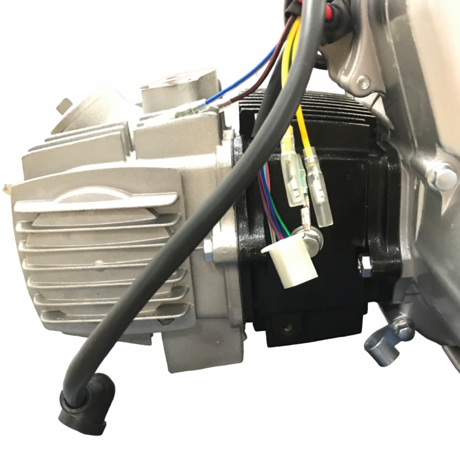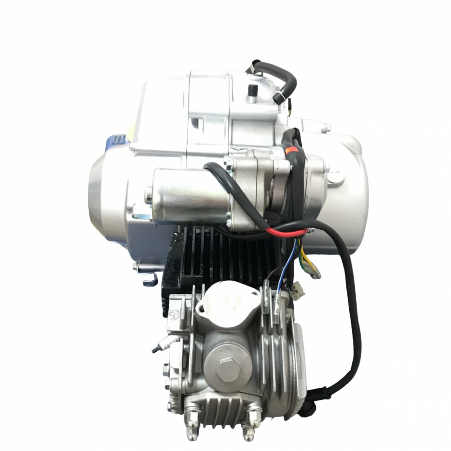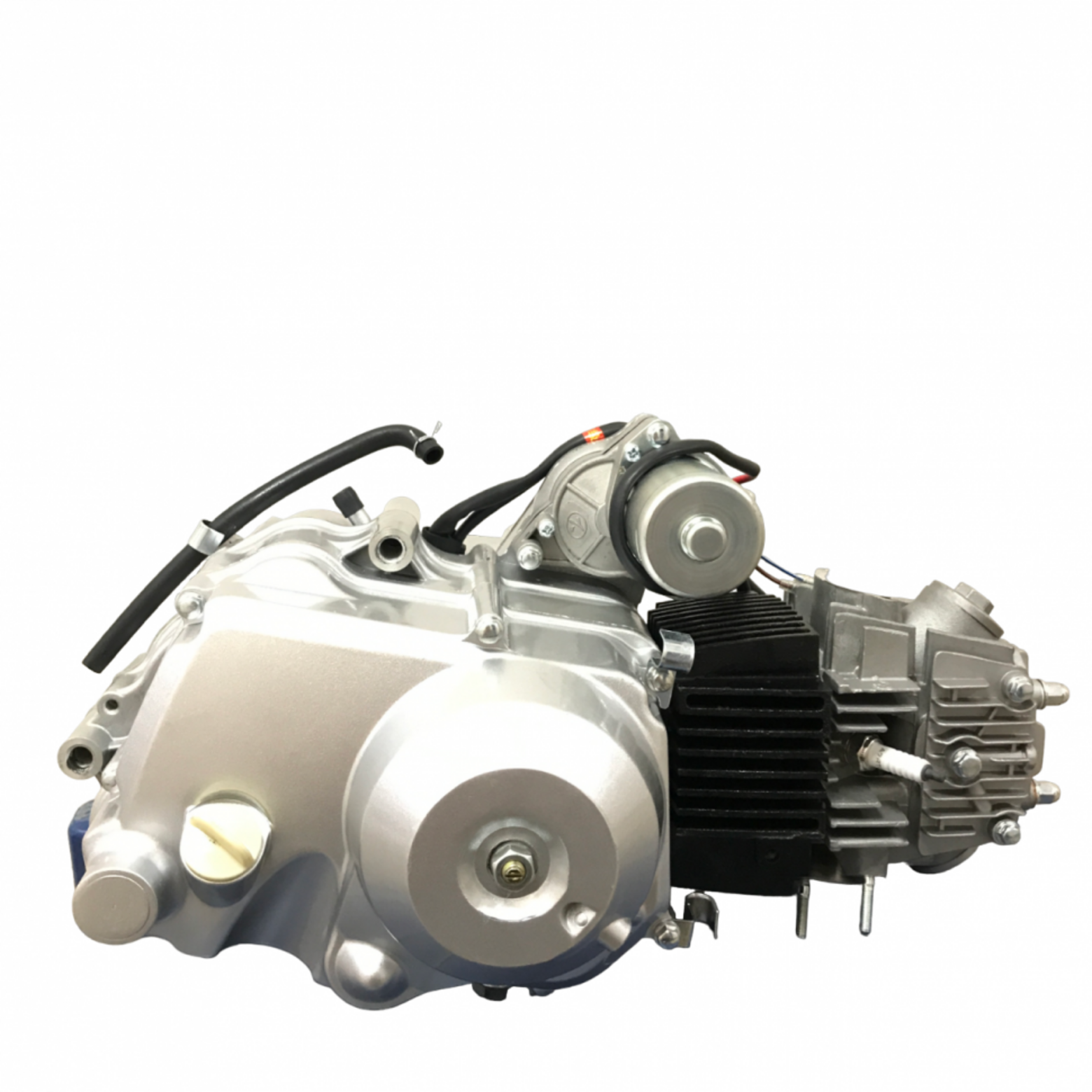 Двигатель в сборе 110 сс 152FMH отличается своей экономичностью и производительностью, а также возможностью широкого применения. Он подходит для установки на мотоциклы различных брендов, включая китайские питбайки. Бензиновый 110-кубовый мотор оснащен полуавтоматической трансмиссией с 4-мя скоростями, которые располагаются: по кругу. Стартер в этой модели расположен сверху. Двигатель оснащен цилиндром под поршень с диаметром 52,4 мм. В комплекте идет необходимый установочный набор:-двигатель-впускной коллектор -рычаг кикстартера-рычаг кпп-реле стартера-реле регулятор-коммутатор-катушка зажигания с бронепроводом-карбюратор В двигатель залито транспортировочное масло, которое потребуется сменить на масло предпочитаемого вами бренда.Общие хар