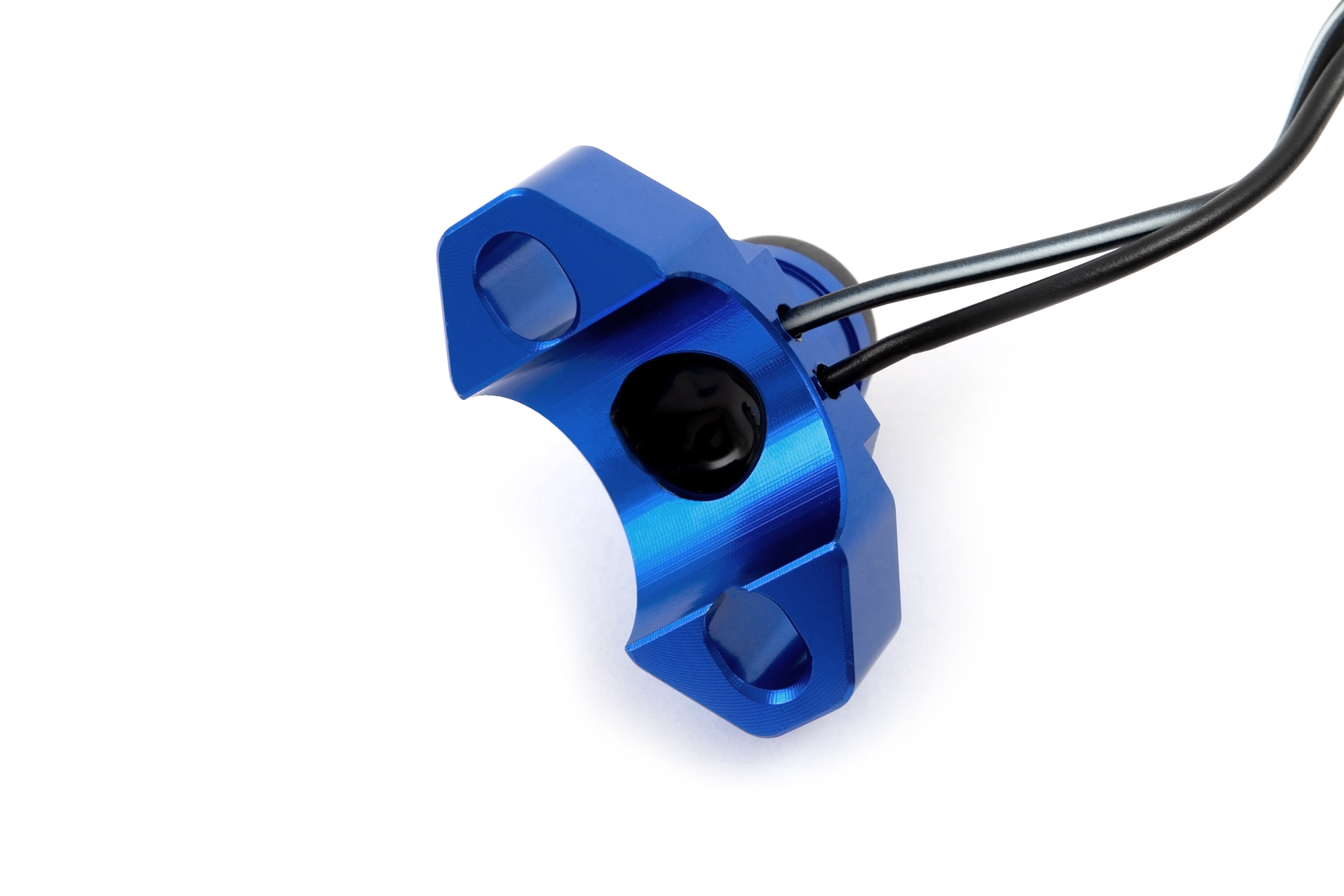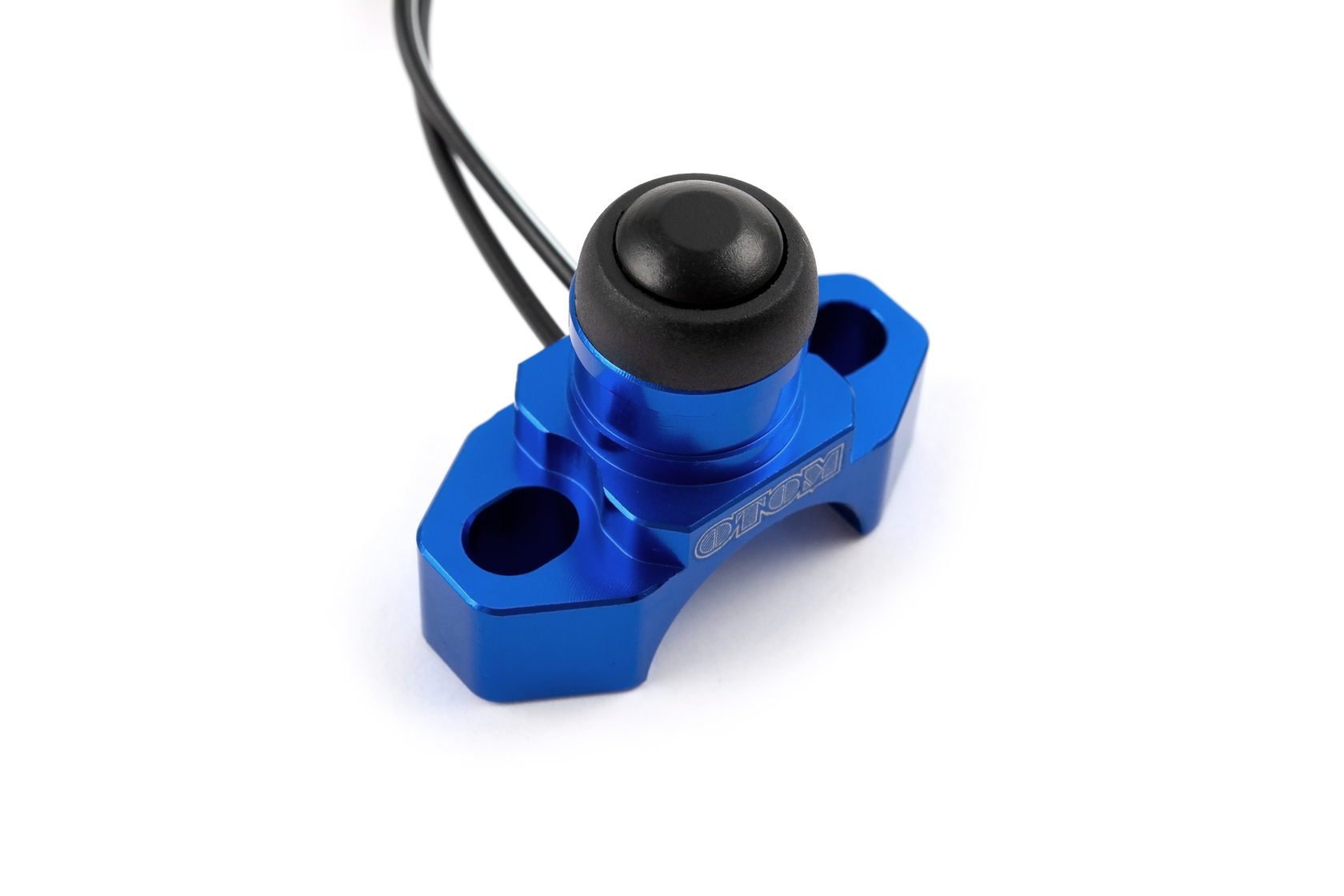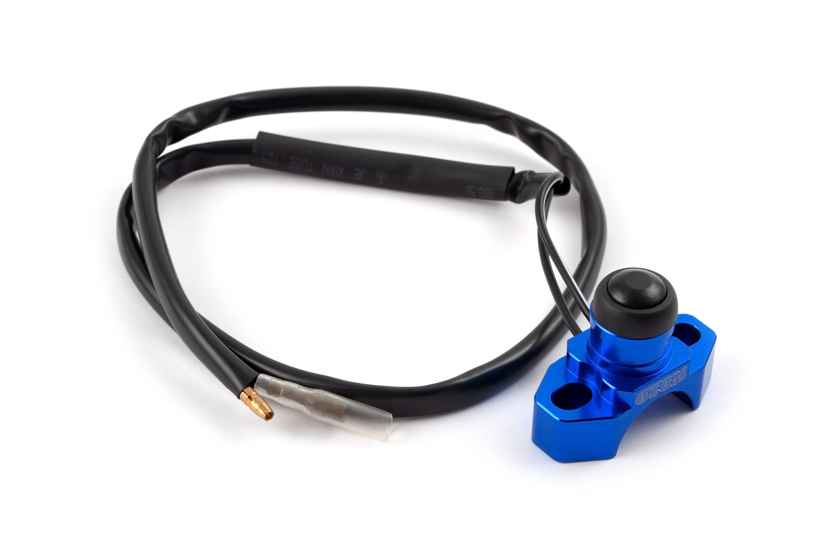 Универсальная кнопка запуска и остановки двигателя OTOM синего цвета. Выполняет функции включения или выключения двигателя в зависимости от схемы подключения. Корпус изготовлен из CNC алюминия с синим покрытием, обеспечивает надежную влагозащиту. Стандартное крепление двумя болтами вместо штатного рычага сцепления или тормозной машинки. Подходит для установки как с левой, так и с правой стороны руля.