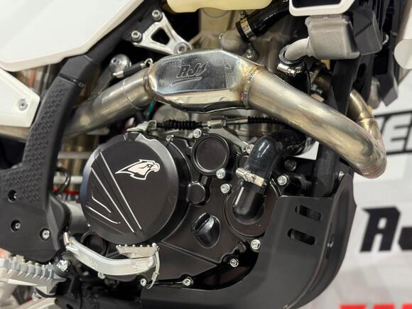 Мотоцикл AJERRA JOKER C10 YBS 300 — это воплощение современного эндуро с безупречным балансом мощности, управляемости и технологичности. Он создан на базе проверенного двигателя Loncin YBS300 176FM с водяным охлаждением, который обеспечивает стабильную работу, отличную тягу и плавную реакцию на газ. Надёжный мотор и карбюратор Nibbi Racing PWK 34 Black формируют сбалансированную связку, обеспечивающую уверенное ускорение и высокую производительность в любых условиях. Конструкция мотоцикла построена на прочной и лёгкой раме К10 завода AJ1 — это точная копия KTM 2024 года, что гарантирует устойчивость и отличную управляемость даже на сложных участках трассы. Внешне модель выполнена в стиле Husqvarna 2024 года: динамичный пластик придаёт мотоциклу агрессивный спортивный облик, а продуманные формы обеспечивают удобство посадки и контроль над техникой. Подвеска у JOKER C10 на высшем уровне: спереди установлена вилка HTW SCC длиной 930 мм с одним картриджем, а сзади — амортизатор HTW 2450 с прогрессией, обеспечивающий мягкость и точную работу при высоких нагрузках. Алюминиевый маятник, фрезерованные траверсы AJ1 2024 и усиленные обода UNISON 7116 создают прочную, но лёгкую конструкцию, идеально подходящую для скоростного эндуро. Мотоцикл оснащён тормозной системой AJ1 с дисковыми тормозами спереди и сзади, обеспечивающими надёжное торможение в любых условиях. Усиленный руль AL7075, фрезерованные ступицы и алюминиевая ведомая звезда AL7075 51 делают управление максимально точным и уверенным. Выхлопная система AJ1 2025 обеспечивает не только приятный звук, но и стабильную работу двигателя на высоких оборотах. Электрооборудование продумано до мелочей: мощный свет 2 EYE LED Generation 4 (50W), литиевый аккумулятор Skyrich, приборная панель в стиле KTM 2024, счётчик моточасов, защита рамы и мотора, передние и задние стропы, а также анатомическое антискользящее сиденье AntiSkid. Каждая деталь создана для удобства и надёжности. Покрышки AJ1 размером 80/100-21 спереди и 120/90-18 сзади обеспечивают уверенное сцепление с дорогой, а цепь KMC 520 Pro выдерживает высокие нагрузки при активной езде. Все болты формата TorX повышают надёжность и упрощают обслуживание. С высотой по седлу 94 см, мотоцикл AJERRA JOKER C10 YBS 300 ориентирован на опытных райдеров, ищущих надёжную и технологичную технику для эндуро и кросса. Эта модель сочетает в себе премиальные комплектующие, высокое качество сборки и выдающиеся характеристики, делая езду комфортной, управляемой и по-настоящему захватывающей.