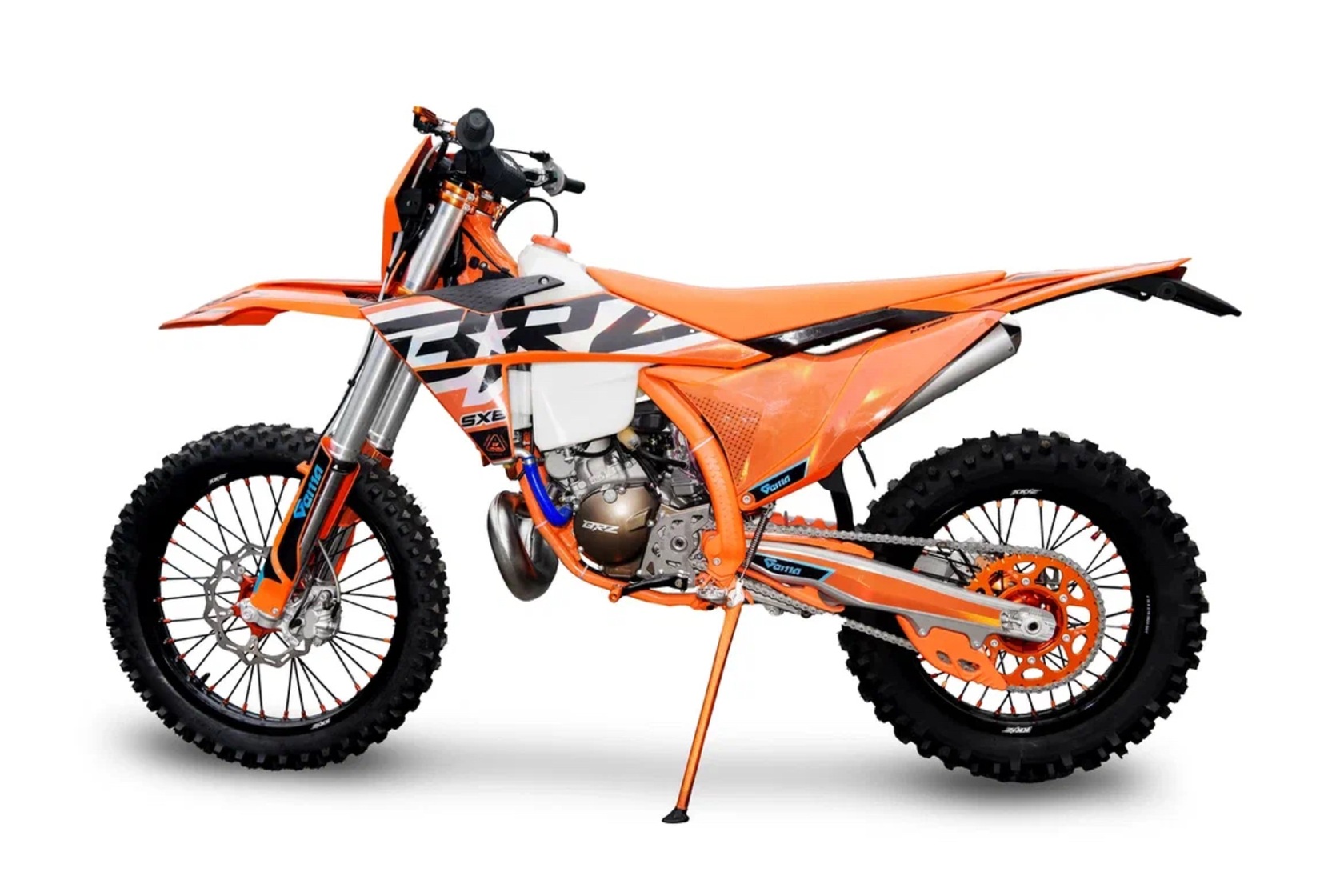 • Размер и тип колес– 21х18 обода усиленные алюминиевые, сплав 7 серии, фрезерованные ступицы ККЕ. Передняя покрышка GEMA F-ENDURO 90/90-21. Задняя покрышка GEMA EX SUPER SOFT 140/80-18.