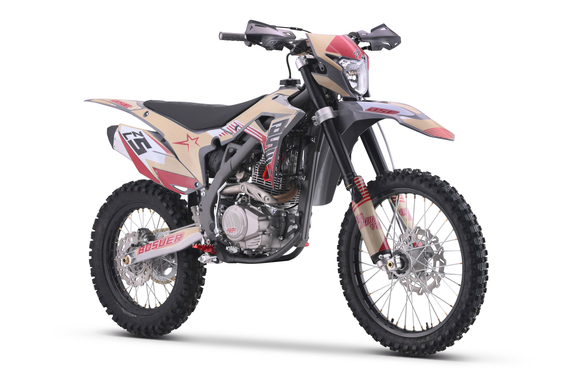 Новинка 2023 года от BSE - модель Т5 из абсолютно новой Т-серии!Наша гордость – мотор TYAN TYX300, который уже отлично зарекомендовал себя на модели Z11. Данный мотор является эксклюзивным для бренда BSE на российском рынке. Официально только у BSE Russia есть разрешение на установку мотора TYAN TYX300 на свою продукцию.Ещё одна особенность модели Т5 - абсолютно новая рама, которая полностью соответствует всем стандартам самого известного австрийского бренда мотоциклов для кросса и эндуро – KTM. Единая геометрия, эргономика, пропорции и углы вылета вилки. Высококачественная сталь, малый вес и большой запас прочности, идеальная развесовка. Мотоцикл оснащен легким алюминиевым подрамником, системой прогрессии и пластиковой защита мотора. Установлен новый тип пластика - прочный, легкий и современный. Колесная база в 1460 мм добавляет отменную маневренность.T5 оборудован фирменной заводской спортивной подвеской BSE Mojo Racing. Подвеска с большими ходами имеет полный диапазон регулировок и помогает отрабатывать даже самые жесткие приземления, с лёгкостью "глотая" все неровности. Подвеску легко настроить под любой рельеф, любую трассу и стиль езды. Вы ощутите результат, когда будете сокращать секунды круг за кругом! Особое внимание было направлено на снижение веса всей подвески.Разработка подвески BSE Mojo Racing производилась опытными инженерами-подвесочниками завода, а настройка - под чутким контролем заводской спортивной китайской командой BOSUER. Спереди установлена полностью регулируемая вилка «перевертыш» BSE Mojo Racing c перьями диаметром 53/58.5 мм, 930 мм. Сзади установлен полностью настраиваемый моноамортизатор BSE Mojo Racing 480 мм.На T5 установлен топливный бак на 8 л, мощная тормозная гидравлическая система с дисками диаметром 240 мм, звезды 13t – 49t, «зубастые» покрышки Carrystone 80/100-21 спереди и 110/90-18 сзади. Мотоцикл оснащается полностью светодиодной фарой головного света, грипсами и ручкой газа Nibbi Racing, цепкой шкуркой сиденья.Легкий (сухая масса 120 кг), прекрасно сбалансированный, мощный мотор. Отточенная управляемость. Подходит для новичков, а также спортсменов в дисциплинах эндуро, хард-эндуро, супер-эндуро, мотокросс.