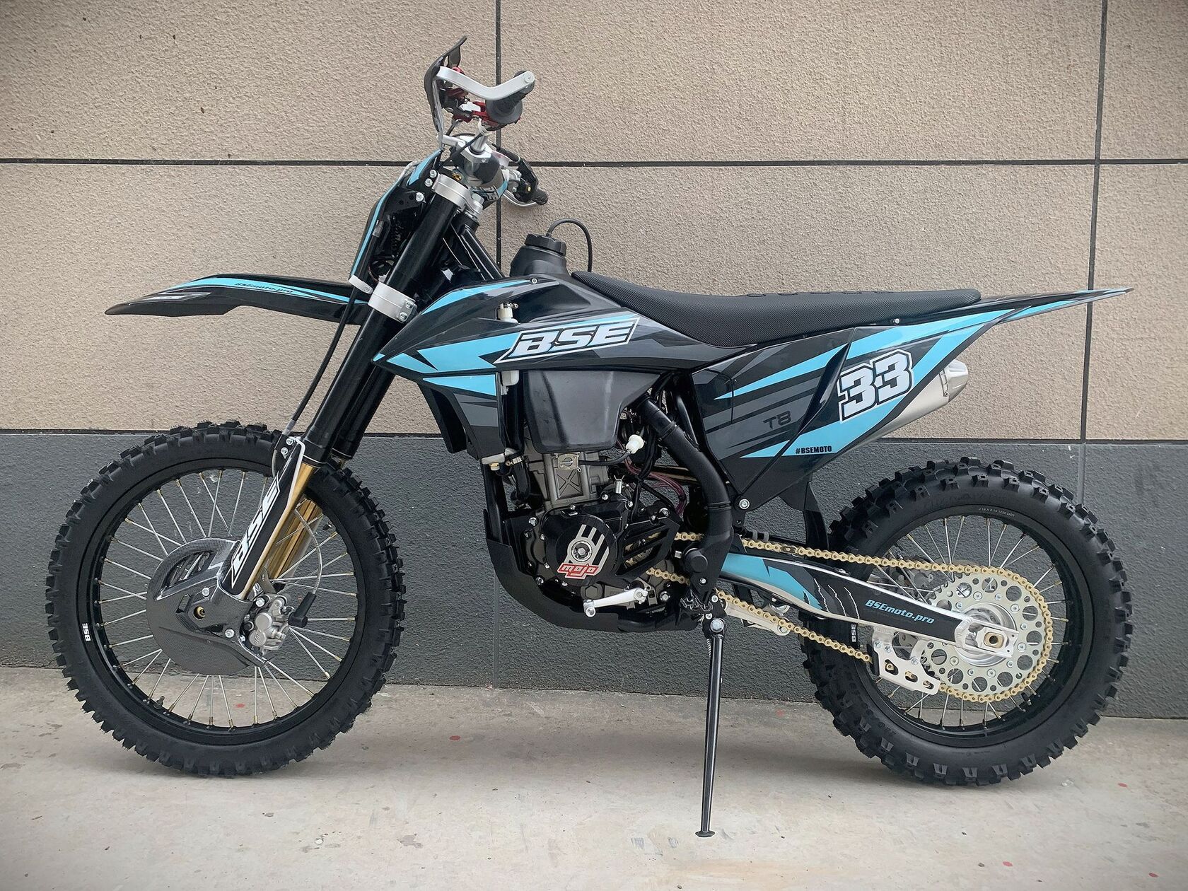 Новинка Т8 из абсолютно новой линейки 2023 года – T серии!Наша гордость – новый мотор TYAN TYX250-SR. Данный мотор является эксклюзивным для бренда BSE на российском рынке. Официально только у BSE Russia есть разрешение на установку мотора TYAN TYX250-SR на свою продукцию.TYAN Motor -профессиональный производитель двигателей и мотоциклов из индустриальной провинции на юго-востоке Китая. TYAN Motor специализируется на разработке, производстве, продаже и сервисе высококачественных моторов и мотоциклов вот уже 11 лет. Капитал компании составляет 1,5 млн $. Территория завода – 29 гектаров, есть современное оборудование и автоматизированные транспортные линии. Собственный первоклассный отдел разработок (R&D center) защитил более 200 патентов. Продукция завода крайне распространена не только в Китае, но и во всем мире. Ежегодно выпускается 1.5 миллионов двигателей и 300 000 мотоциклов. Все нацелено на качество продукции. Цель компании: выпускать самые лучшие двигатели на рынке. Слоган компании: "Еще больше мощности при лучшем качестве".Новый двигатель TYAN TYX250-SR – один из самых технологичных, современных и мощных из доступных на китайском рынке. Рабочий объём -250сс, 4-х тактный, 2 распредвала DOHC, 4-клапанная ГБЦ, водяное охлаждение, балансирный вал. Система питания – проверенный карбюратор Nibbi Racing 34 Black. Все это позволило снять внушительные 29 л.с. при 9000 об. в мин. и 24 Нм при 7500 об. в мин. Коробка передач – механическая 6 ступенчатая, запуск – только электростартером. Мотор сделан максимально легким, прочным и эффективным, с минимальными вибрациями для комфортного передвижения.Ещё одна особенность модели Т8 – абсолютно новая рама, которая полностью соответствует всем стандартам самого известного австрийского бренда мотоциклов для кросса и эндуро – KTM. Единая геометрия, эргономика, пропорции и углы вылета вилки. Высококачественная сталь, малый вес и большой запас прочности, идеальная развесовка. Мотоцикл оснащен легким алюминиевым подрамником, системой прогрессии и пластиковой защитой мотора. Установлен новый тип пластика - прочный, легкий и современный. Короткая колесная база в 1460 мм добавляет отменную маневренность.T8 оборудован фирменной заводской спортивной подвеской BSE Mojo Racing. Подвеска с большими ходами имеет полный диапазон регулировок и помогает отрабатывать даже самые жесткие приземления, с лёгкостью "глотая" все неровности. Подвеску легко настроить под любой рельеф, любую трассу и стиль езды. Вы ощутите результат, когда будете сокращать секунды круг за кругом! Особое внимание было направлено на снижение веса всей подвески.Разработка подвески BSE Mojo Racing производилась опытными инженерами-подвесочниками завода, а настройка - под чутким контролем заводской спортивной китайской командой BOSUER. Спереди установлена полностью регулируемая вилка «перевертыш» BSE Mojo Racing c перьями диаметром 53/58.5 мм, 930 мм. Сзади установлен полностью настраиваемый моноамортизатор BSE Mojo Racing 480 мм.На T8 установлен топливный бак на 8 л, мощная тормозная гидравлическая система с дисками диаметром 240 мм, звезды 13t – 49t, «зубастые» покрышки Carrystone 80/100-21 спереди и 110/90-18 сзади. Мотоцикл оснащается полностью светодиодной фарой головного света, грипсами и ручкой газа Nibbi Racing, цепкой шкуркой сиденья и защитой переднего тормозного диска.Легкий (сухая масса 114 кг), прекрасно сбалансированный, мощный мотор. Отточенн