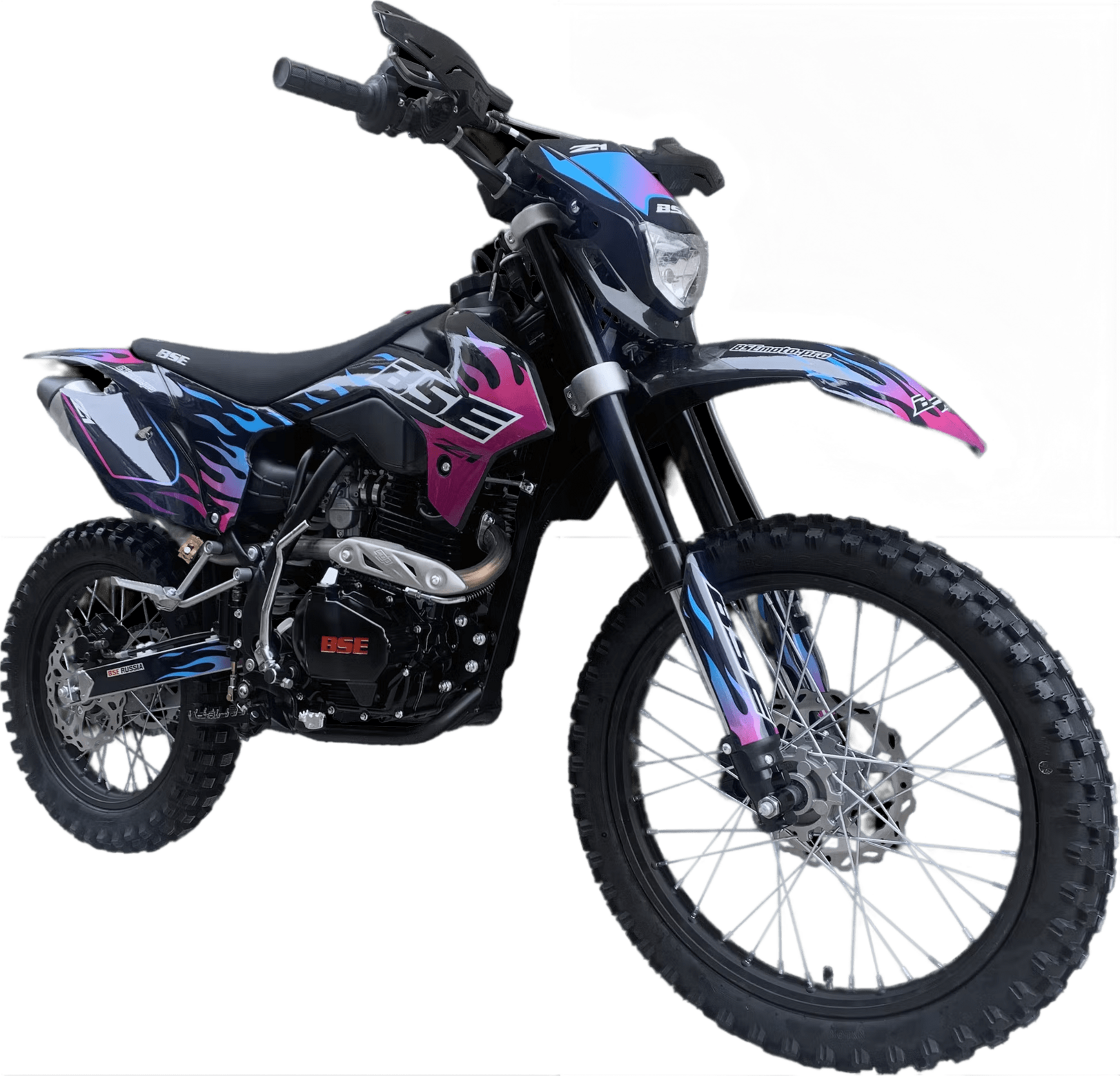 Кроссовый мотоцикл BSE Z1 19/16 удачный, сбалансированный и технологичный мотоцикл для начинающих. Компактный, лёгкий, надёжный, простой в управлении мотоцикл с ярким дизайном.Z1 оснащен мощным, но в тоже время послушным и отзывчивым мотором Zongshen 150 куб см с вертикальным расположением цилиндра, надежным карбюратором Nibbi и 5-ступенчатой механической трансмиссией. Запатентованная прочная стальная рама BSE, увеличенная колёсная база, вилка “перевертыш”, мощная тормозная система HSK Racing, внедорожная резина Yuanxing, колёса размером 19/16 позволят спокойно преодолевать легкий и средний уровень оффроуда. Препятствия, броды брёвна – Z1 все под силу.BSE Z1 отлично подходит для лёгких мотопрогулок по пересечённой местности с пассажиром благодаря удобному сиденью, подножкам заднего пассажира и невысокой высоте мотоцикла.