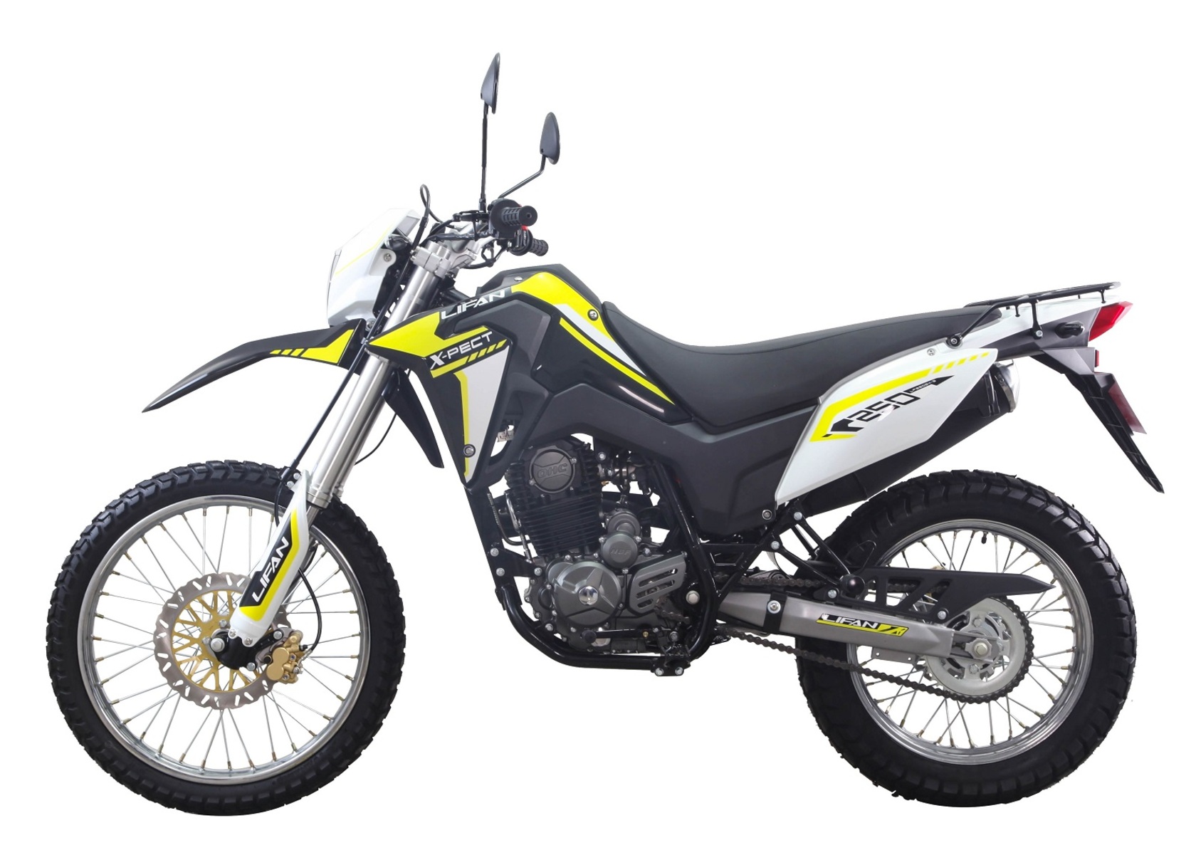 Lifan LF250GY-3 - это эндуро мотоцикл, который сочетает в себе надёжный двигатель, прочную раму и высокую проходимость. Спроектированный для бездорожья и приключений, он предлагает достойную производительность и комфортное управление на любом типе покрытия. Стильный дизайн, простота и надёжность конструкции делают его отличным выбором для любителей активного отдыха и экстремальных поездок.Дорожный просвет 280 мм и отличная проходимость позволяют справляться с различными условиями бездорожья.Двигатель NBS250 – одноцилиндровый, 2-клапанный двигатель с воздушным охлаждением, электрический стартер, 6-ступенчатая коробка передач, максимальная мощность 14.3 кВт (19,5 л.с.) при 8500 об/мин и максимальный крутящий момент 20,5 Нм/ 6500 об/мин после оптимизации конструкции камеры сгорания двигателя и впускного канала.Передняя вилка перевернутого типа диаметром 41 мм с траверсами из алюминиевого сплава, передний ход подвески 224 мм, центральный задний амортизатор, задняя подвеска с ходом 230 мм и высокопрочный рычаг из алюминиевого сплава подходят как для бездорожья, так и для езды в городе.Передние шины диаметром 21 дюйм и задние 18-дюймовые шины толщиной 120 мм.Высококачественные шины для бездорожья, противоскользящие, износостойкие, спортивные, для легкого передвижения по любой дороге.