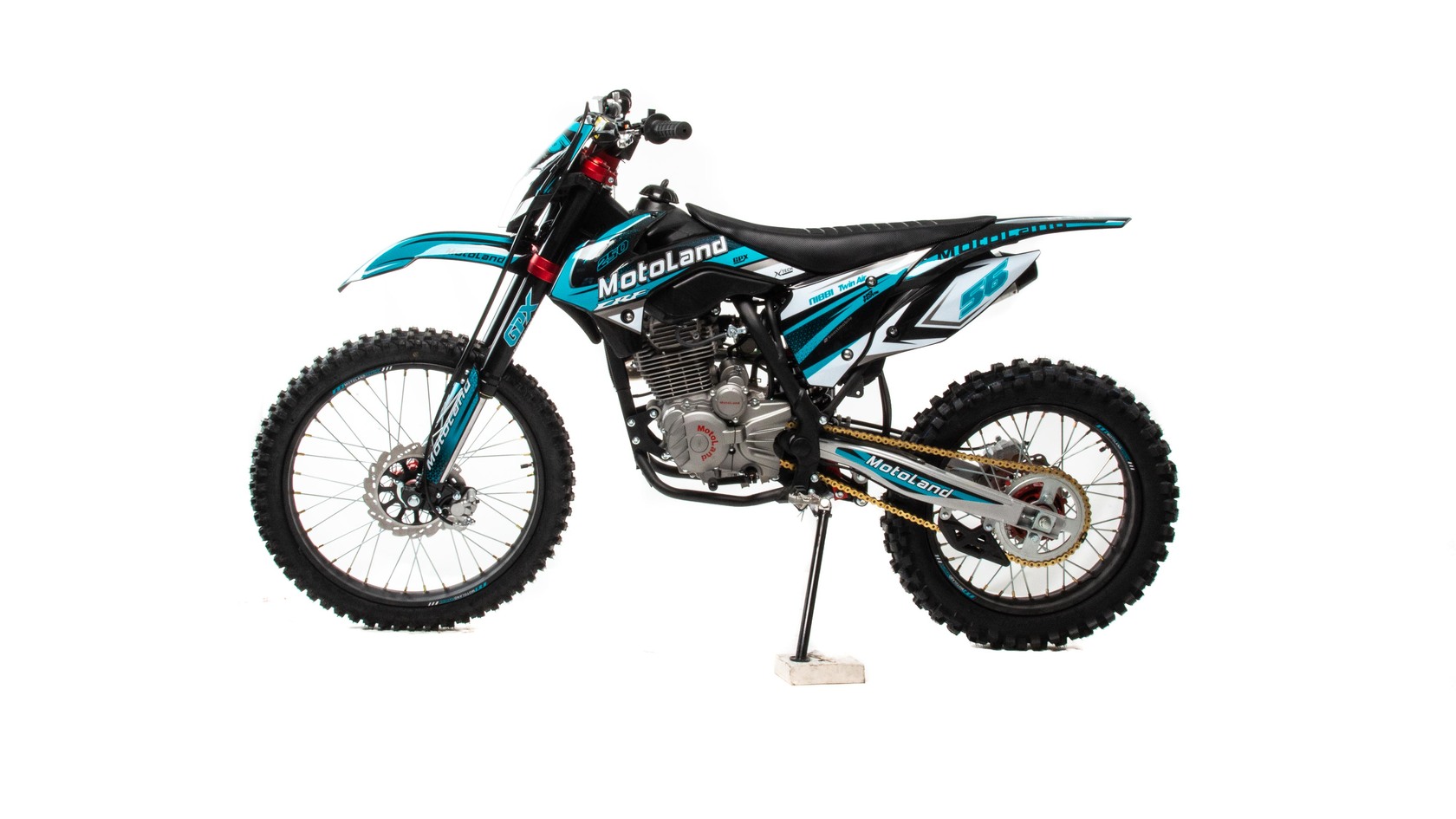 Мотоцикл Motoland CRF 250 оснащен топовым двигателем 172 FMM с карбюратором NIBBI PE 30 ! Идеален для езды по бездорожью, т. к. имеет отличную проходимость на песке и мягком грунте.Объем двигателя 250 см3 и мощность 21 л. с. обеспечивает хорошую динамику разгона и высокую максимальную скорость. Коробка передач механическая, пятиступенчатая. Карбюратор NIBBI PE 30 оснащен резиновым патрубком, что обеспечивает снижение вибрации. Объём топливного бака 6 литров. Передняя подвеска — телескопическая, не регулируемая, перевёрнутого типа. Вилка GPX Professional оснащена клапанами, для стравливания избыточного давления, что позволяет значительно повысить ресурс работы сальников. Задняя подвеска с прогрессией, амортизатор имеет регулировку отбоя и преднатяг пружины. Рама мотоцикла полудуплексная, стальная. Сиденье кроссовое, с противоскользящим покрытием. Обода колес спецованные, стальные, черного цвета с алюминевыми, окрашенными литыми ступицами. Покрышки 80/100 "21 110/100 "18 с мощными грунтозацепами обеспечивают превосходное сцепление с грунтом и позволяют контролировать управляемость на нестабильных поверхностях кроссовых трасс. Размер заднеего колеса — 18 дюймов (450 мм), переднего — 21 дюйм (530 мм). Передние и задние тормоза дисковые, с надёжными двухпоршневыми суппортами. Руль GPX переменного сечения с алюминевыми литыми траверсами, выдерживает значительные нагрузки, в том числе при падениях. Высота по рулю и седлу позволяет чувствовать себя удобно как людям среднего, так и большого роста. Мотоцикл Motoland CRF 250 оснащён светодиодной фарой головного света. Система зажигания электронная (CDI). Запуск двигателя комбинированный ножным кикстартером и электростартером. Так же в комплекте есть щиток для номера, который ставится вместо фары при необходимости.