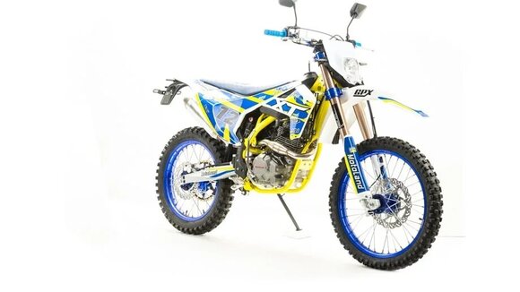 MOTOLAND XT250 ST (21/18)Современный дизайн мотоцикла напоминает очертания легендарной модели HUSQVARNA.Установлен самый мощный из двигателей с воздушным охлаждением ZONGSHEN 172FMM-3АБольшой ход подвесок для комфортного передвижения по пересеченной местности, которые также позволяют ехать быстро и агрессивноВысокий вынос руля которые позволяет комфортно ездить в стойке и полностью контролировать мотоциклКрепкая фрезерованная траверса с креплением стоек через резиновые уплотнения для амортизации руля.Мотоцикл больше предназначен для езды по переченной местности полям и лесам, чем для города из за профиля резины.Он маневренный и удобный,сидение с противоскользящим чехлом.При этом он прост в управлении и неприхотлив в обслуживании и подходит мотолюбителям любого возраста,и опыта вождения.Технические характеристикиАнтибуксаторы спереди и сзади для езды на пониженном давлении или защиты от прокручивания камерыПластиковая защита рамы для сохранения лакокрасочного покрытия рамы от механических поврежденийВыхлопная труба с Power Bomb и креплениями под пружины и прямоточным глушителем, в котором установлена флейтаЗадняя и передняя подвеска с регулировкамиКарбюратор NIBBI PE30Быстрый доступ к воздушному фильтру для комфортного обслуживанияОбновленная тормозная системаКроссовая резинаУстановлена 528 цепьВысота по седлу 920мм.Вес 120 кг.