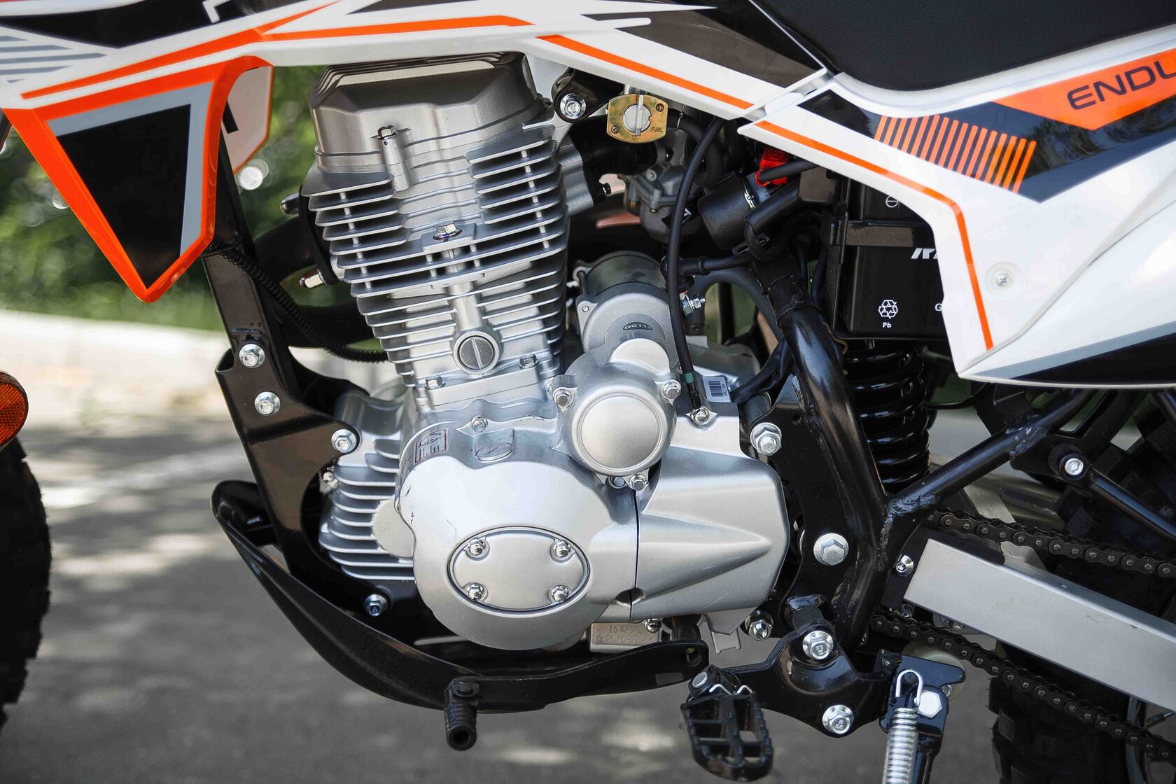 Мотоцикл Racer RC200GY-C2 Enduro оснащен мощным четырехтактным двигателем объёмом 196 куб. см. Максимальная мощность составляет 15 л.с., а максимальная скорость при этом около 95 км/ч. Этот мотоцикл идеальный вариант для эксплуатации в условиях проселочных дорог, лесов и полей.Запуск двигателя может осуществляться как с помощью электростартера, так и с помощью кик-стартера. Охлаждение двигателя – воздушное, расход составляет всего 2,2 л/100 км. Коробка передач имеет пять скоростей вперед.Мотоцикл Racer RC200GY-C2 Enduro имеет концептуальный дизайн, который точно не даст Вам остаться на дороге незамеченным!У нас Вы можете купить этот мотоцикл с бесплатной доставкой по РФ и гарантией до года. Также его можно приобрести в рассрочку или в кредит.