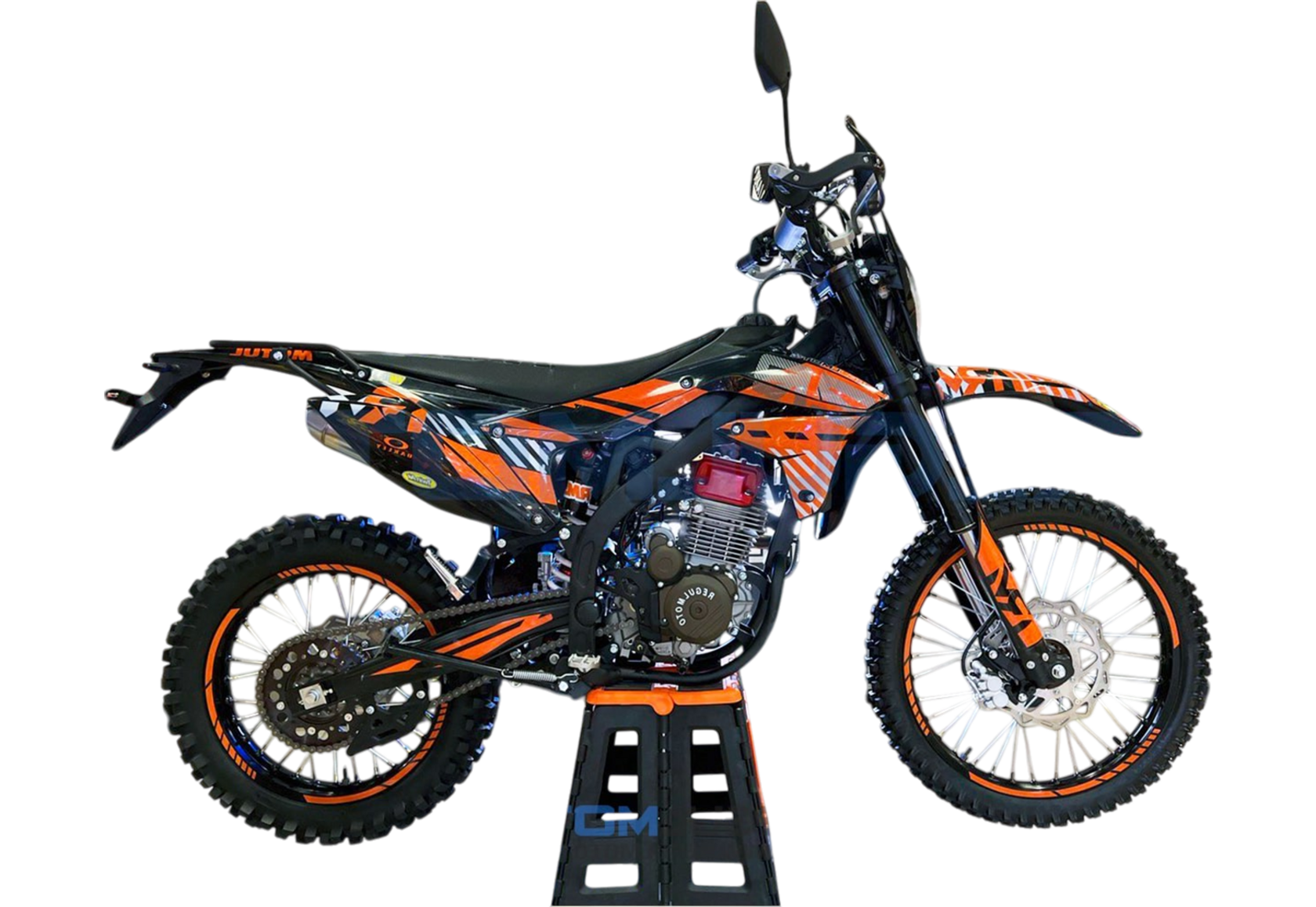 Regulmoto ZR PR Enduro 2024г. 4 клапана на цилиндр с балансирным валом«Regulmoto» представляет вниманию поклонников фри-райда мотоцикл Regulmoto ZR 4 valves. Стильный и доступный байк многоцелевого назначения найдет применение в качестве надежного аппарата для покорения бездорожья, а также может использоваться для решения широкого круга утилитарных задач и передвижения по дорогам общего пользования.В основе конструкции Regulmoto ZR 4 valves – мощная стальная рама, поставленная на колеса 21/18, которые наилучшим образом подготовлены к офф-роаду. Ободья и ступицы колес изготовлены из алюминия, также установлены усиленные спицы и буксаторы, надежно фиксирующие покрышки на ободе. Подвеску эндуро-байка представляют длинноходная телескопическая вилка-«перевертыш» спереди и стальной маятник с прогрессией и моноамортизатор с компенсационным резервуаром сзади. Работу амортизаторов при необходимости можно настроить при помощи регулировки сжатия/отбоя.Силовая установка мотоцикла представлена одноцилиндровым 4-тактным двигателем Zongshen ZS175FMM-7 с воздушным охлаждением рабочим объемом __ см3 с балансировочным валом 4-мя клапанами; за подготовку топливной смеси отвечает карбюратор Nibbi PE30. Технический потенциал надежного и производительного двигателя позволяет демонстрировать __лошадиную силу максимальной мощности и максимального крутящего момента.Regulmoto ZR PR 4 valves также привлекает внимание отличными внешними данными: мотоцикл комплектуется крепким и гибким пластиком с ярким дизайном, выполненным в узнаваемой стилистике популярной модели известного производителя. Подбор качественных компонентов также заслуживает внимания:• электронная приборная панель;