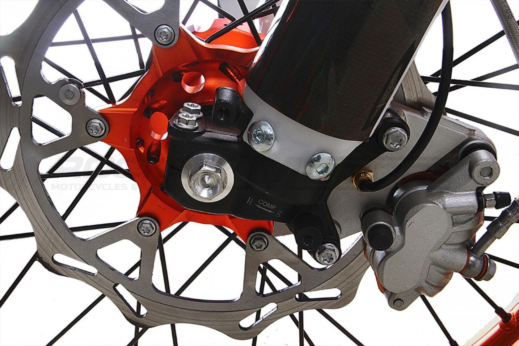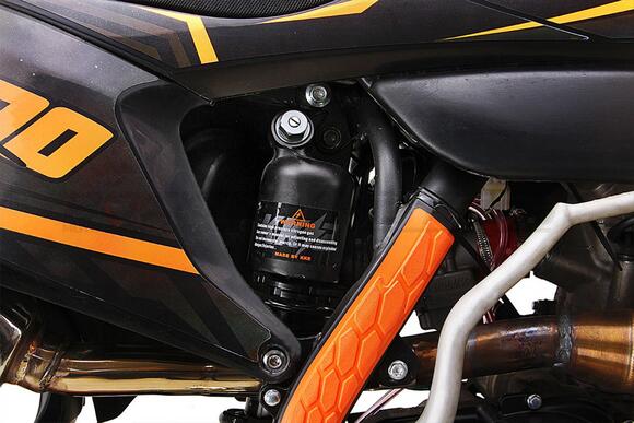 Задняя подвеска: моноамортизатор KKE 470 мм регулируемый, с настройкой сжатия и отбоя. Прогрессия с рычажной системой