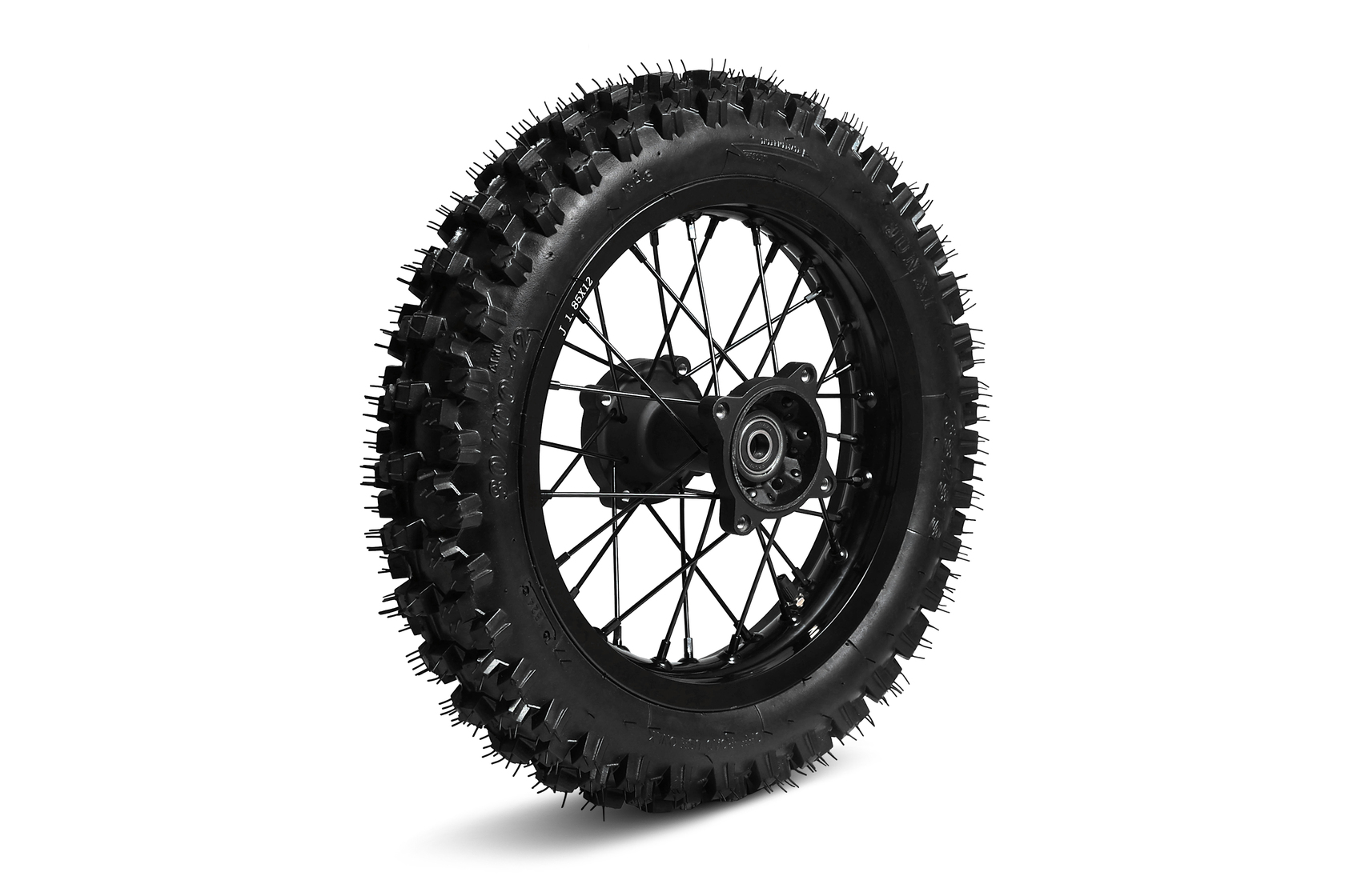 Готовое к установке заднее колесо R12 для большинства питбайков с алюминиевой ступицей под ось 15 мм. В комплекте надёжная покрышка Yuanxing 80/100-12. Колесо поставляется без звезды и тормозного диска, что позволяет использовать уже имеющиеся элементы с вашего мотоцикла или приобрести совместимые компоненты отдельно.