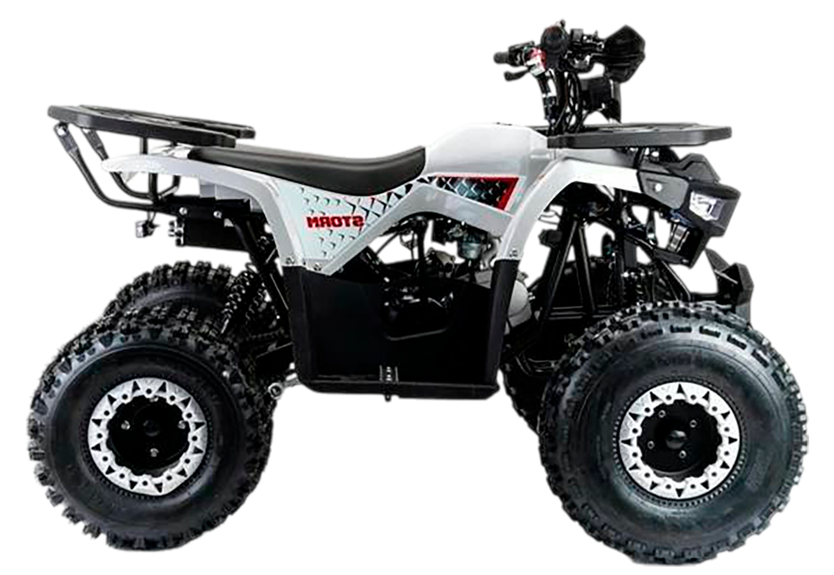 Квадроцикл Motoland 125 STORM cтильный, современный, универсальный квадроцикл подойдет вашему ребенку как мальчику, так и девочке. Его утилитарный дизайн разработан с учетом вкусов современного поколения и понравится всем без исключения.Квадроцикл не предназначен для дорог общественного пользования. Его 8 дюймовые колеса на хорошей внедорожной резине с легкостью преодолеют все преграды в виде грязи, песка, луж и кочек. А что еще нужно для веселых покатушек в выходные дни?У этого квадроцикла отличная управляемость в любых условиях эксплуатации, благодаря грамотной настройке подвески. Данный квадроцикл оснащен автоматической коробкой передач с реверсом, который установлен на усиленной раме, что дает уверенность в прочности конструкции.Ваш ребенок быстро овладеет навыками езды на данной технике и получит массу запоминающихся эмоций.Квадроцикл STORM оснащен двигателем 1P54FMI 125 см3, мощностью 8 л.с. c воздушным охлаждением, электрстартером, LCD (электронная) панелью приборов, светодиодной оптикой, стоп-сигналомДля безопасности имеется чека отключения двигателя, если ребенок отпускает руль, то мотоцикл практически сразу отключается при разрыве чеки.Максимальная скорость 60 км/ч. Объем топливного бака составляет 3,5 л