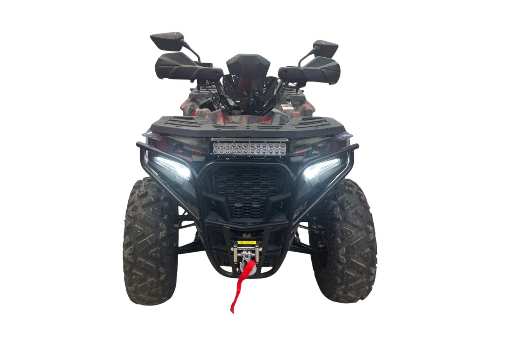 Машина также оснащена удобным сиденьем, что является несомненным плюсом во время длительных поездок. А наличие большого багажного отсека позволяет перевозить с собой все необходимое для отдыха на природе, рыбалки и личных нужд. Мощные передние и задние фары квадроцикла создают отличную видимость даже в темное время суток.