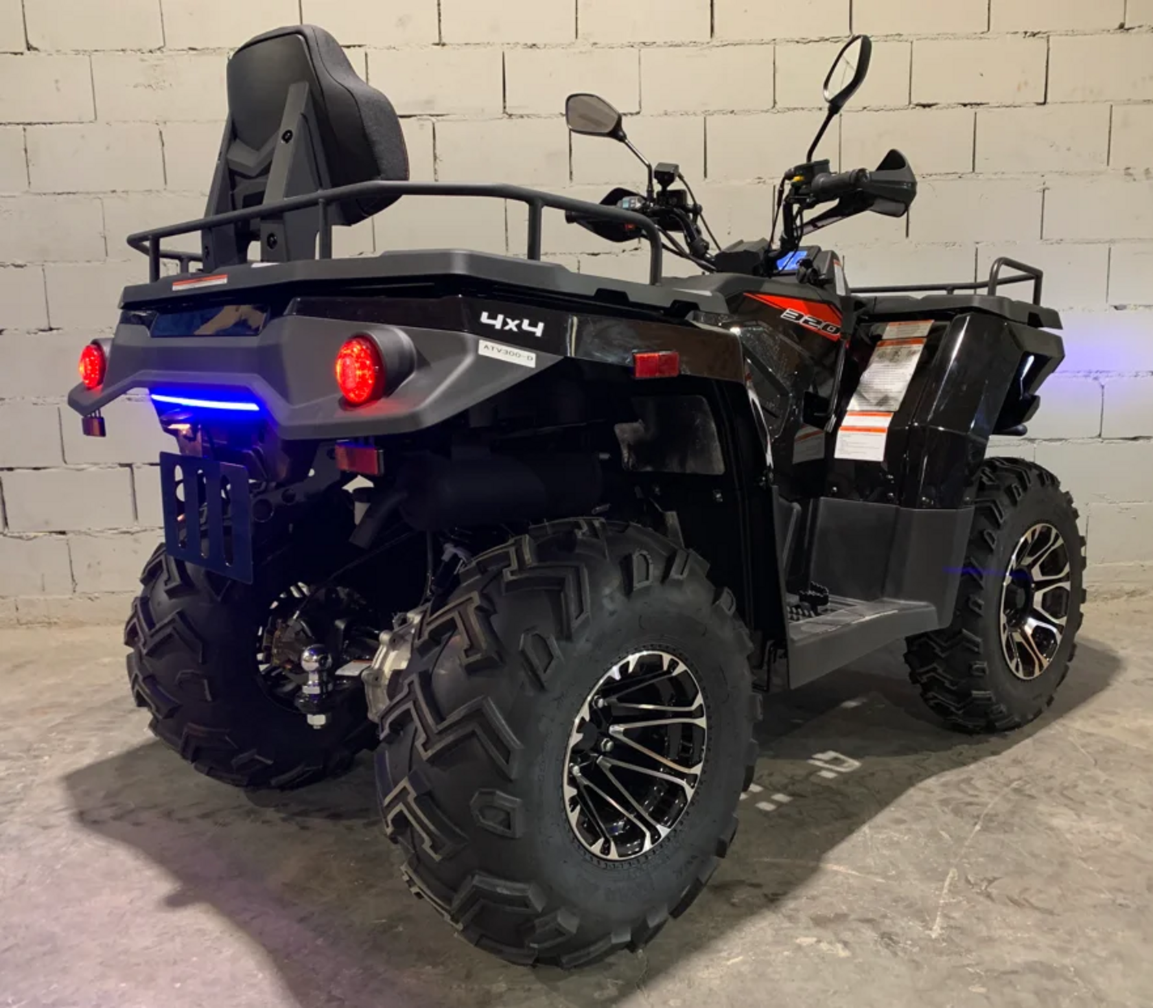 Качество и многофункциональность, простота в использовании и надежность – вот, что является преимуществом при покупке квадроцикла Linhai Yamaha F320 PROMAX. Jiangsu Linhai и Yamaha Motor Company – крупнейшие бренды в Китае, которые совместными усилиями производят внедорожник.Начало работы мотора от системы электронного пуска, питание происходит по инжекторному типу. Силовая установка имеет рабочий объем 275 куб. см, а мощность в 22 л.с. с легкостью разгоняет внедорожник до 80 км/ч. Квадроцикл имеет массу 280 кг.
