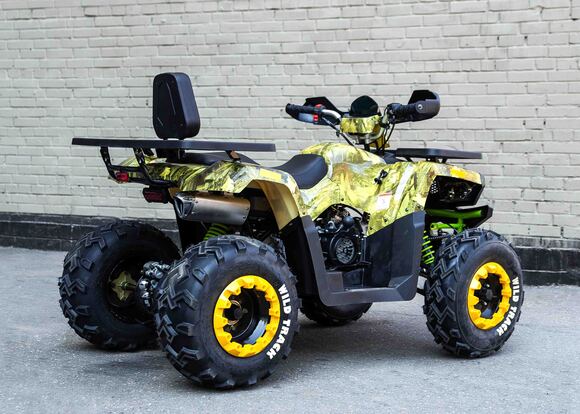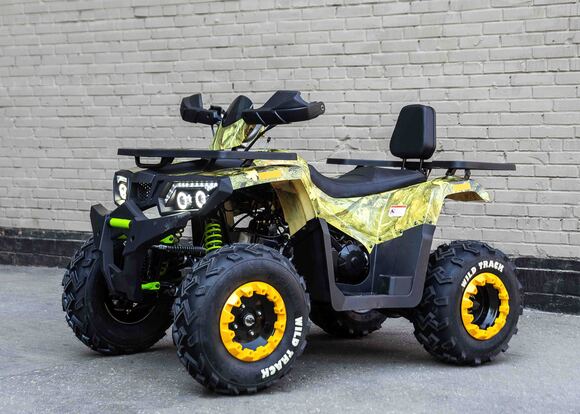 Wild Track Lux – сочетает в себе удобство ,простоту обслуживания и хорошую проходимость в самых разных условиях использования . Благодаря отлично настроенной подвеске управление и передвижение на нем становится очень комфортным. Все неровности и кочки, будут проглатываться без проблем, ведь на нем установлены колеса на 10 дюймов .Квадроцикл оснащен 161 QMK на 200 см3 двигателем c воздушно-масляным охлаждением и автоматической коробкой передач с реверсом , дисковыми тормозами, панелью приборов , линзованной оптикой с диодными ДХО и люстрой , литыми дисками, ручным стартером . Он отлично подойдет для семейных покатушек ,а также для рыбалки и охоты .Вы получите незабываемые впечатления от вождения .Данная комплектация поставляется почти собранная.