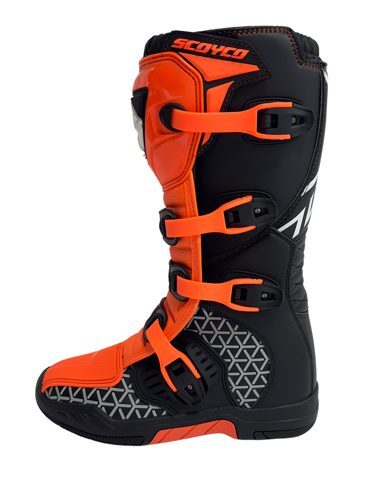 Scoyco MBM006: Полный контроль на бездорожьеМотоботы Scoyco MBM006 — созданы для тех, кто бросает вызов самым экстремальным трассам. Это ваш надежный союзник в мире мотокросса, эндуро и триала, обеспечивающий максимальную защиту, выносливость и комфорт.Ключевые преимущества:• Превосходная защита: Усиленный пластиковый панцирь защищает голень, лодыжку и пятку. Регулируемый замок на щиколотке обеспечивает идеальную посадку.• Прочность и износостойкость: Комбинация кожзама и нейлона выдерживает экстремальные нагрузки. Усиленные зоны в критических точках продлевают срок службы.• Агрессивное сцепление: Шипастая резиновая подошва обеспечивает полный контроль над мотоциклом в любых условиях.• Комфорт и вентиляция: Дышащая подкладка и вентиляционные каналы эффективно отводят влагу и тепло.• Надежная фиксация: Две металлические пряжки и широкая липучка для быстрого и точного подгона.Технические характеристики:Бренд: ScoycoМодель: MBM006Назначение: Мотокросс, Эндуро, ТриалМатериал верха: Искусственная кожа, нейлон, текстильные вставкиЗащита: Носок, пятка, щиколотка (регулируемый замок), голеньПодкладка: Дышащая сетка, съёмная антибактериальная стелькаПодошва: Резиновая, масло- и бензостойкая, гибкаяЗастежка: 2 металлические пряжки + липучкаРазмеры: 39-48 (уточняйте наличие)Для кого:Профессиональные кроссмены и любители эндуро, которые ценят безопасность, контроль и результат на трассе.