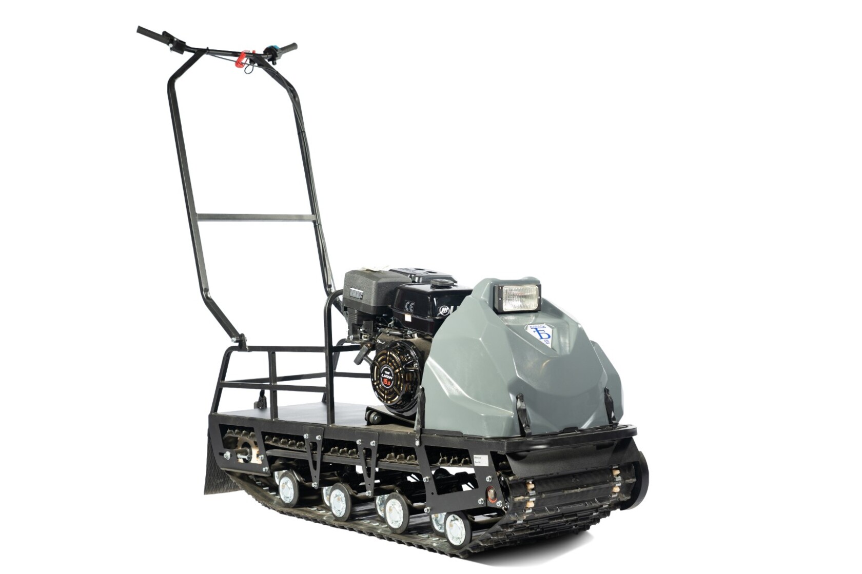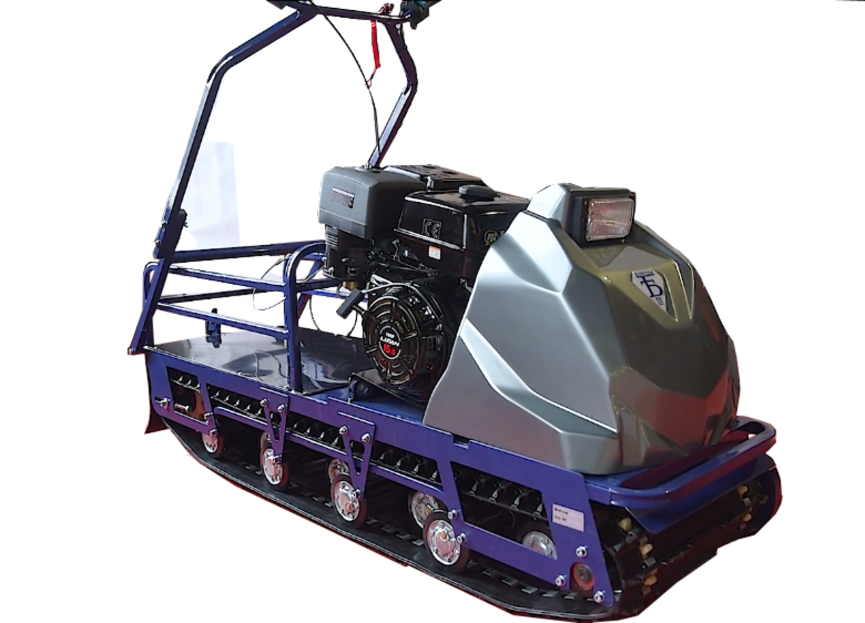 Мотобуксировщик из классической линейки на базе гусеницы шириной 500мм с максимальной площадью опоры (гусеница Буксировщик LONG).