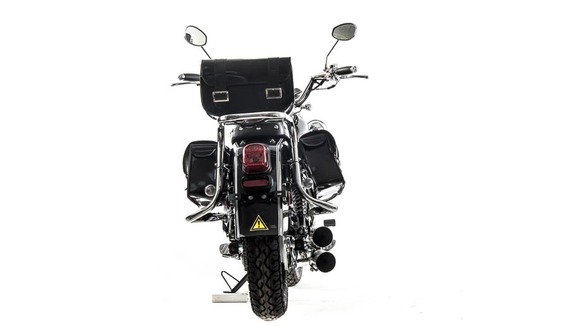 Комплектация Передний тормоз гидравлический дисковый с однопоршневым суппортом, прочно закреплён на 6 болтов. Тормозной шланг защищён специальным изолятором. Задний тормоз барабанный, легко регулируется даже в полевых условиях.Руль сечения 22 мм с высоким подъёмом удобен для мотоциклистов разного роста. Зеркала заднего вида большие, с хорошим обзором. На ручках расположены кнопки дальнего и ближнего света, сигнал аварийной остановки, кнопки включения и выключения двигателя, блинкер, поворотники, звуковой сигнал. Также на руль вынесен подсос, что удобно при холодном запуске.Мотоцепь 420 защищена специальным кожухом. На чоппер установлены 2 выхлопные трубы.