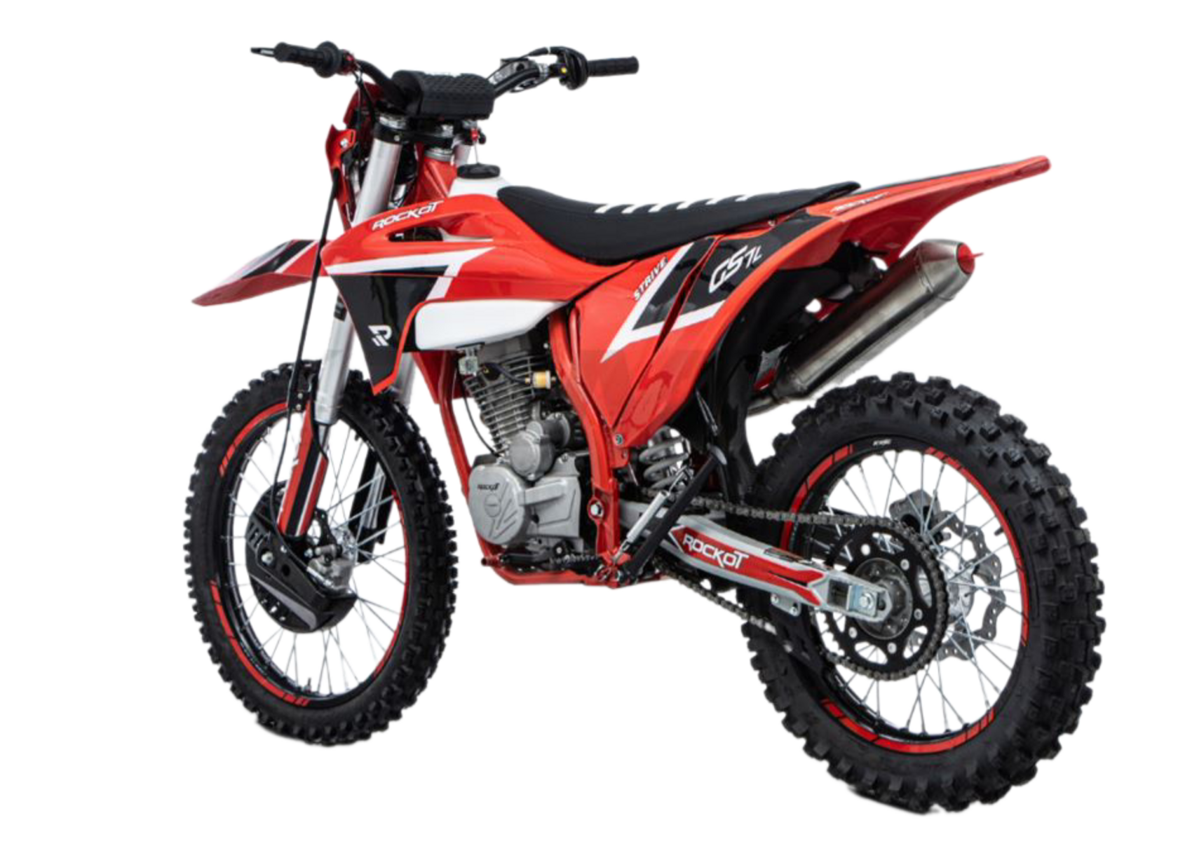 1Мотоцикл ROCKOT GS7L Strive представляет собой воплощение современных технологий и инноваций в мире мотоциклов эндуро. Этот мотоцикл идеально подходит как для профессиональных гонщиков, так и просто любителям езды на природе.Основное внимание при разработке было уделено мощному 1-цилиндровому мотору Loncin 4T 171FMM с объемом 249 куб. см и современной карбюраторной системой топлива PWK34. ROCKOT GS7L Strive обеспечивает надежный запуск как с помощью электростартера, так и с помощью кик-стартера, что добавляет удобства и гибкости в использовании.Мотоцикл оснащен прочной рамой шестигранного сечения, усиленной хромомолибденовым сплавом, а также стальным маятником и литой алюминиевой поперечиной для надежной защиты и долговечности в самых разных условиях. Амортизационная система ROCKOT GS7L Strive включает телескопическую переднюю вилку и регулируемый задний моноамортизатор, благодаря чему байк можно легко настроить под индивидуальные предпочтения и особенности трассы.Система тормозов оснащена дисковыми гидравлическими тормозами спереди и сзади, благодаря чему достигается уверенное и эффективное торможение на любой скорости. Колеса ROCKOT GS7L Strive с усиленными алюминиевыми ободами и специальными шинами GUMMY обеспечивают отличное сцепление с любой поверхностью.Дизайн мотоцикла воплощает современные тенденции: светодиодные фары, алюминиевый руль переменного сечения и панель приборов со счетчиком моточасов для удобства контроля.