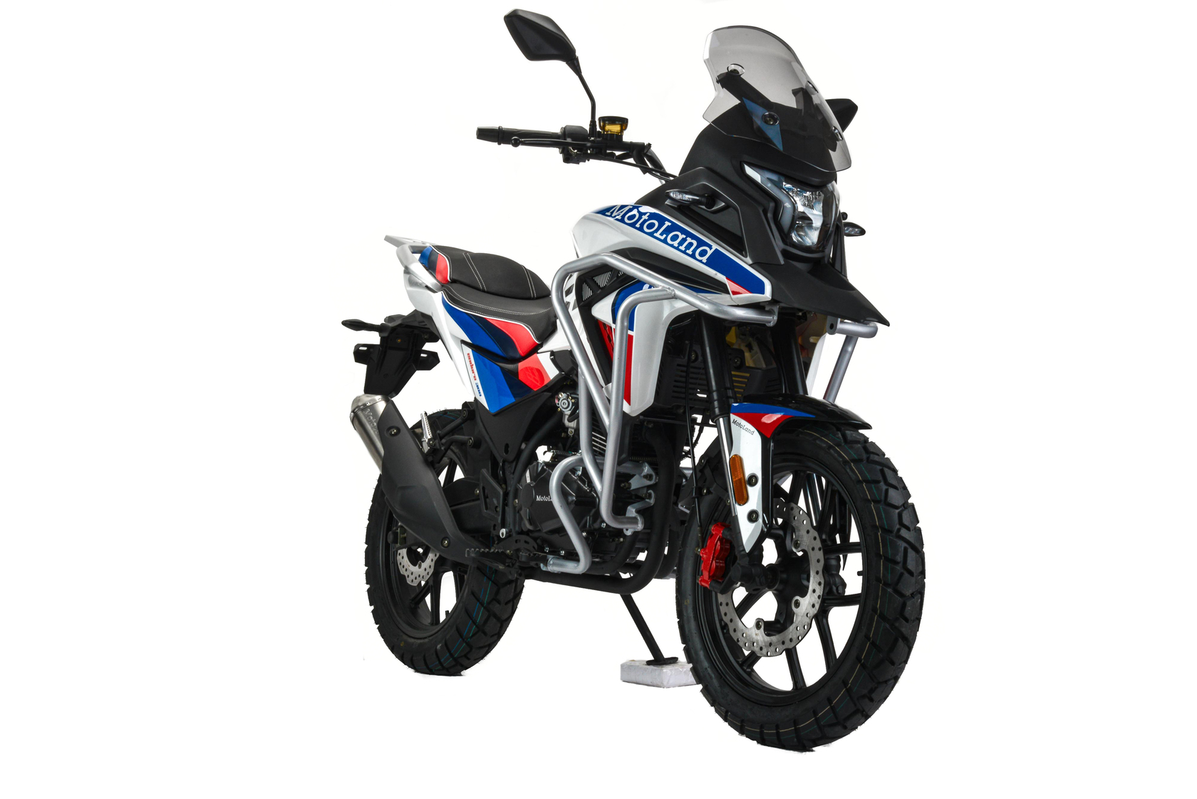 Motoland GS ENDURO является классическим турэндуро с укороченной колесной базой в размере 1330 мм. Он обладает вертикальным углом наклона вилки около 70 градусов и прямой посадкой, что делает его идеальным выбором как для начинающих райдеров, так и для опытных мото путешественников. Особенностью такой геометрии является легкость управления на низких скоростях. В сочетании с мощным двигателем ZS 175FMM-5 (PR300 с балансировкой), выдающим 25 лошадиных сил, мы получаем комфортный мотоцикл для городской езды и путешествий как по асфальту, так и по пересеченной местности.Мотоцикл Motoland GS ENDURO характеризуется своим ярким и узнаваемым дизайном, прочной рамой из Cro-mo труб, обладающей высокими прочностными характеристиками, а также современной подвеской с выносными регулировками компрессии и отскока. Он оснащен ободами из алюминиевого сплава, наличием электростартера, прямоточным выхлопом и LED оптикой с возможностью переключения между ближним и дальним светом.