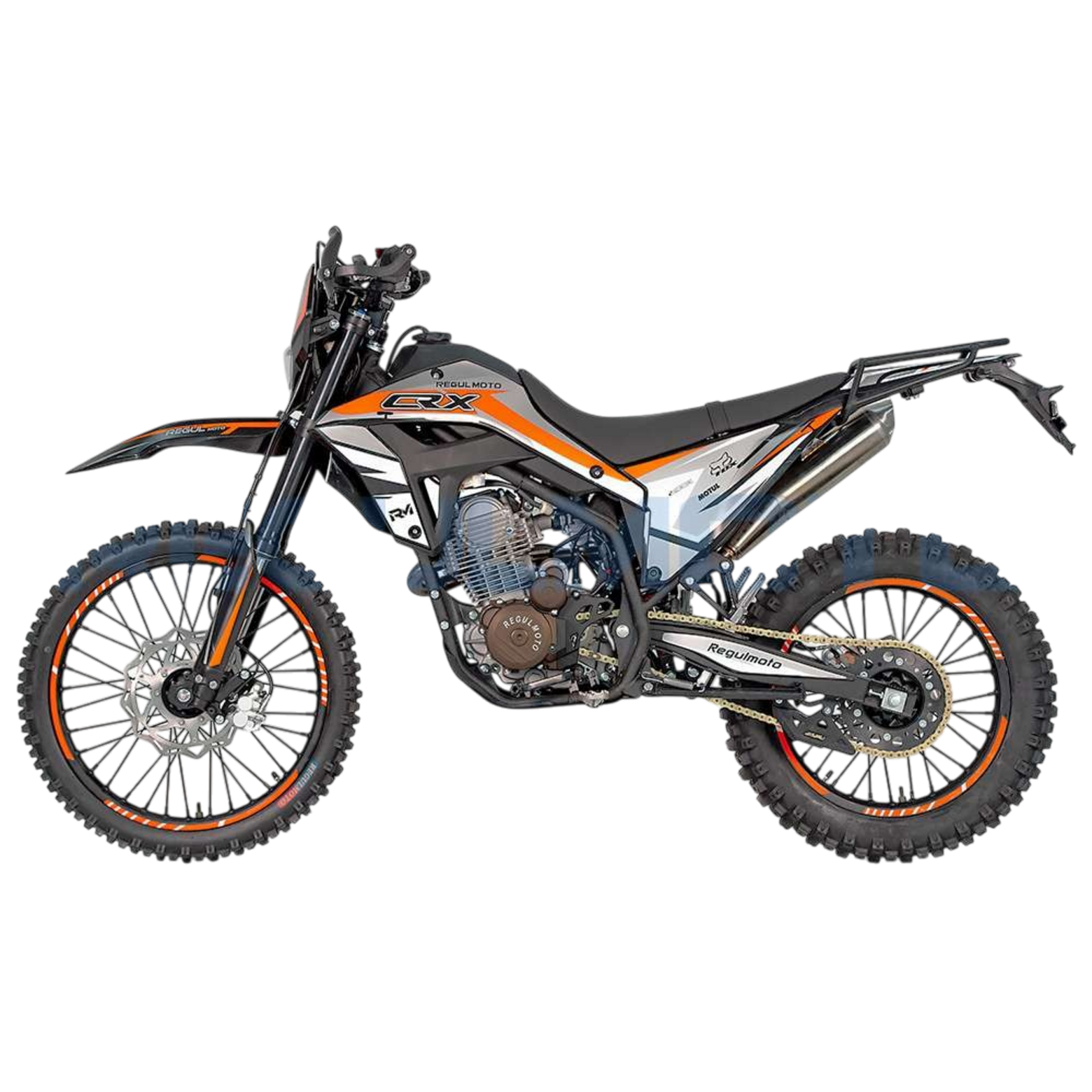 Новинка 2024 года: Мотоцикл Regulmoto CR-X 300Для Regulmoto CR-X 300 нет плохих дорог!Представляем долгожданную новинку 2024 года — мотоцикл Regulmoto CR-X, созданный на базе легендарной Honda CRF300L. Этот мотоцикл оснащен мощным двигателем Zongshen PR300 с двумя клапанами на цилиндр и карбюратором Nibbi Racing PE30, что обеспечивает отличную производительность и надежность.Подвеска и управление:• Передние амортизаторы с регулировкой и зеркалом 41 мм для точной настройки под любые дорожные условия.
