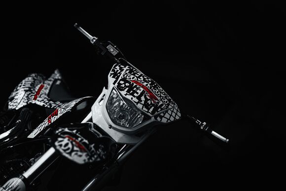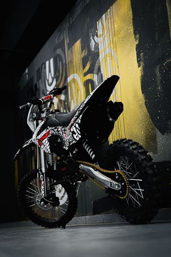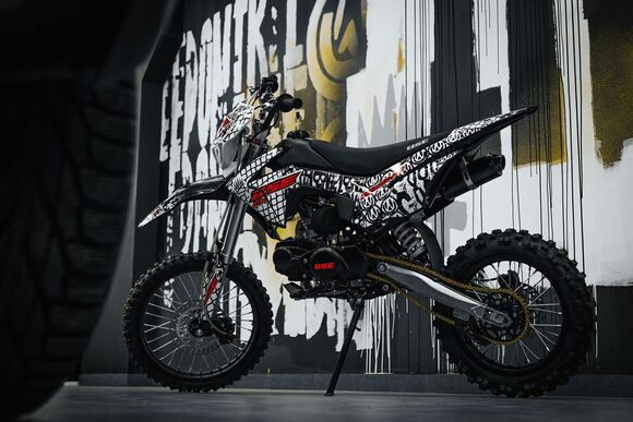 ДОПы New Телескопическая вилка спереди и моноамортизатор сзади гарантируют плавное и комфортное вождение даже по неровной местности. Дисковая тормозная система обеспечивает надежное и точное торможение, что делает управление питбайком более предсказуемым и безопасным.