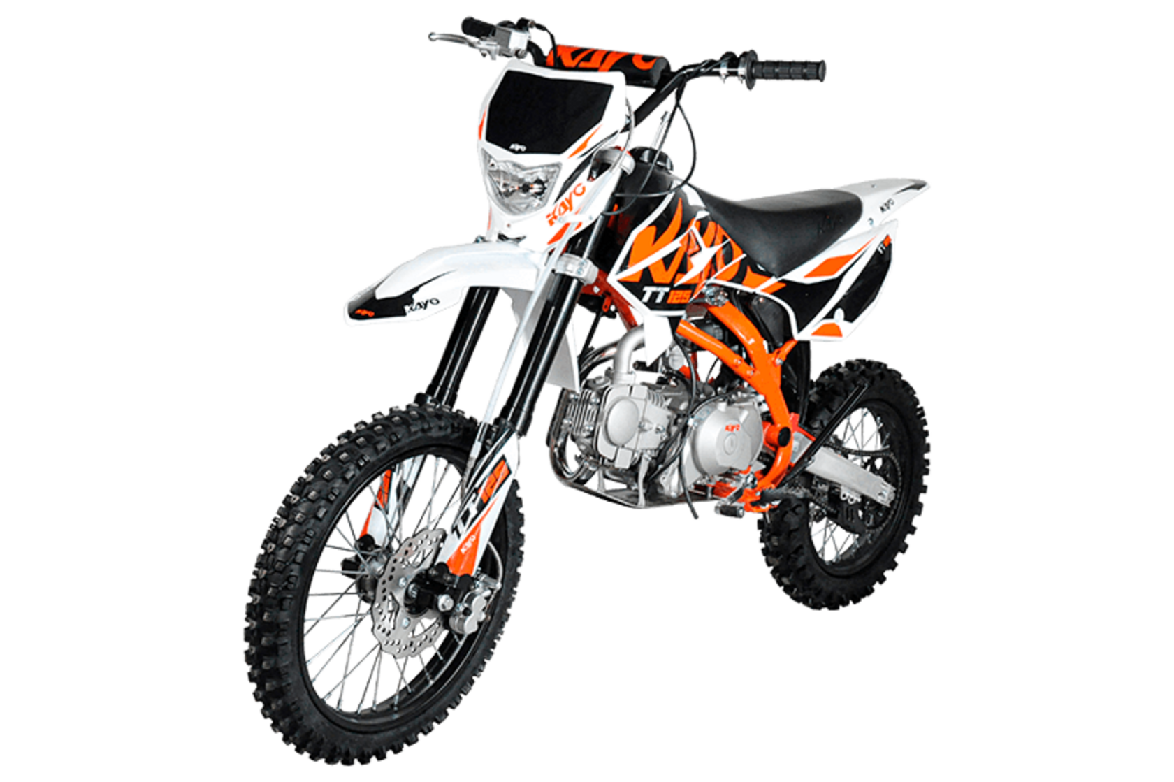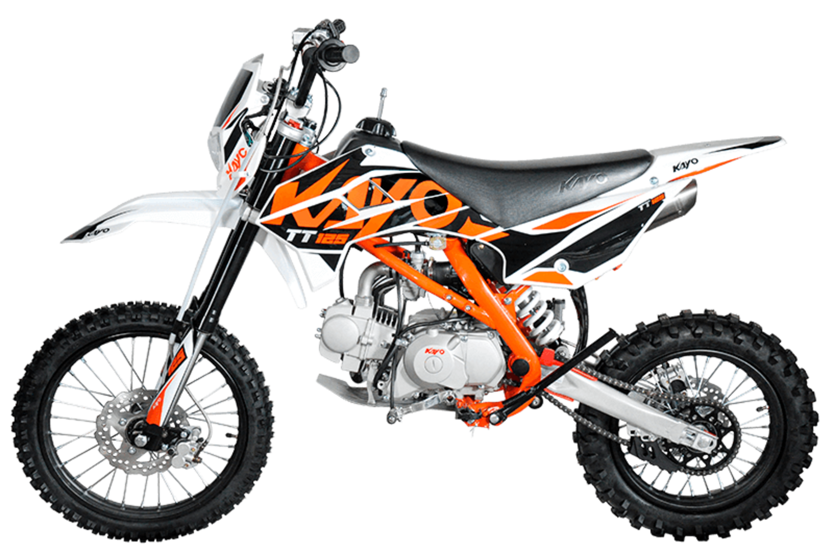 Модельная линейка KAYO в 2022 году включает в себя три разновидности классических питбайков с колесами 17/14 в комплектации Kayo Basic 125: питбайк с механическим сцеплением и кикстартером KAYO Basic TT125, питбайк с полуавтоматической трансмиссией и электростартером KAYO Basic TT125EA, и питбайк с механическим сцеплением и электростартером - KAYO Basic TT125EM . Все они зиждятся на раме, известной по более ранним комплектациям Evolution, что предполагает чуть более высокую посадку пилота. Высота по седлу 885 мм. Удобнее всего управлять этими машинами райдерам с ростом от 155 до 170 см. Комплектация Kayo Basic 125EM является в этом мотосемействе самой классической моделью для обучения на механической коробке. В помощь новичкам и электростартер, которым оборудованы питбайки этой модификации.