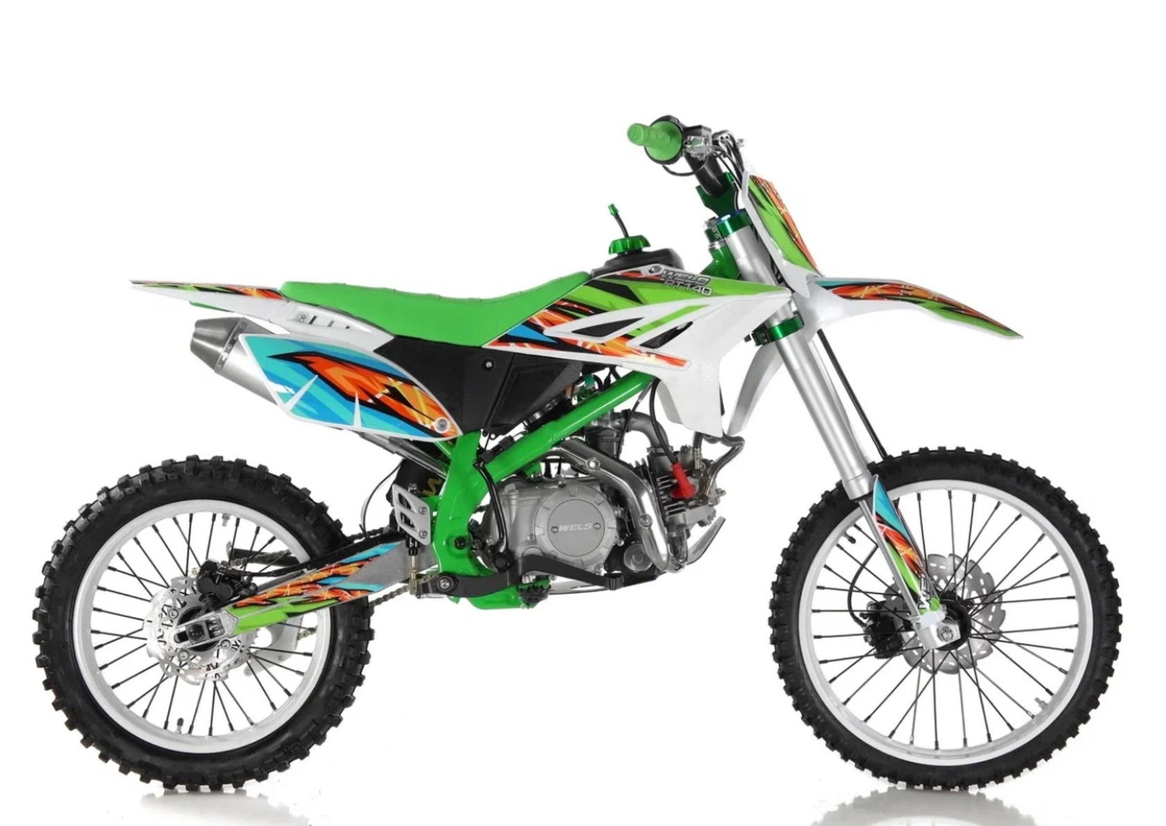 Новинка 2020 года от компании WELS.Новая модель построена на новой раме, питбайк в базовой комплектации включает в себя все необходимое, фара, моточасы, буксаторы, 428 цепь, внешний вид подчеркивает яркая графика.Пит-байк оснащен электростартером, качественным карбюратором KEIHIN, работающим в паре с фильтрбоксом, и надежным двигателем YX с электростартером. Из-за легкого веса питбайк очень прост в эксплуатации.Питбайк Wels 140сс предназачен для активных покатушек как в загородных условиях, так и по подготовленным трассам. Легкий вес мотика вкупе с резвым двигателем, способны для достижения любых результатов и в учебной езде и в продвинутом отношении, с максималкой до 100 км/ч!Техническая начинка пита от Wels как всегда на высоте; вилка-перевертыш, супер тормоза с армированными шлангами, злая off-road резина. С питбайком Wels вы подружитесь навсегда! Поставляется без ПТС, как спортинвертарь - не для дорог общего пользования.Отлично подойдёт как новичкам, так и опытным райдерамУ нас Вы можете купить этот мотоцикл с бесплатной доставкой по РФ и гарантией до года. Также его можно приобрести в рассрочку или в кредит.