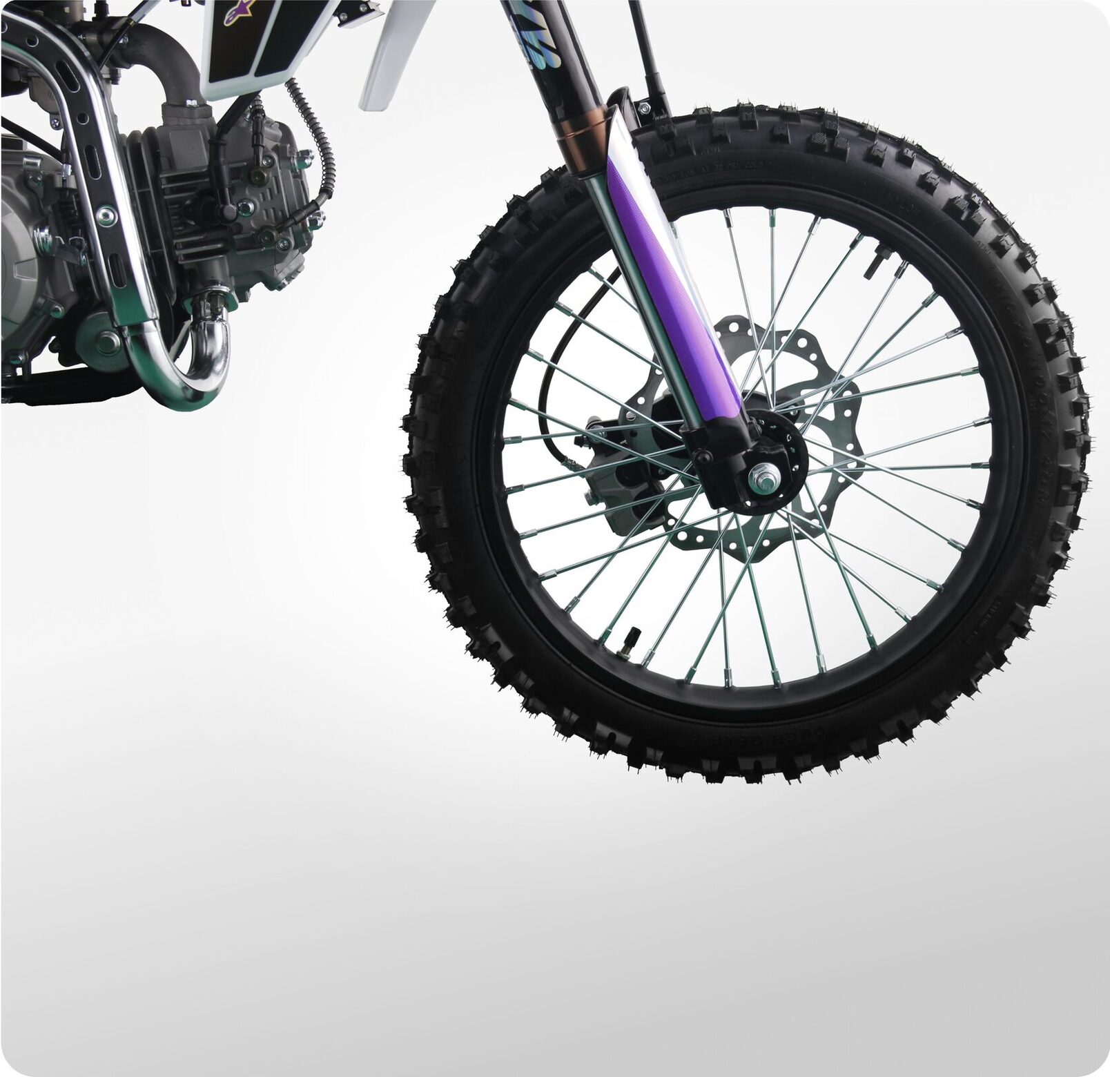 MIVIMOTO CORSA 150 — настоящий байк для тех, кто не боится скорости и любит преодолевать препятствия. Мощный 150-кубовый двигатель выдает 12 лошадиных сил, обеспечивая динамичный разгон и плавный ход как по дорогам, так и по бездорожью.- Четырехтактный двигатель сочетает в себе мощность и надежность, а также дополнительно оснащен масляным радиатором для более эффективного охлаждения при больших нагрузках. Карбюратор Nibbi Racing PE22 обеспечивает стабильную подачу топлива, а электростартер делает запуск легким и удобным.- Прочная стальная рама. Конструкция выдерживает серьезные нагрузки, сохраняя устойчивость как при активной езде, так и в экстремальных условиях.- Спереди питбайк оснащен перевернутой телескопической вилкой KYB tech, сзади — моноамортизатором с регулируемой жесткостью. Конфигурация обеспечивает плавный ход, хорошую отработку неровностей и комфорт при прыжках и резких маневрах.- Тормоза. Фирменные гидравлические дисковые тормоза HSK на обоих колесах обеспечивают точное и быстрое торможение в экстремальных условиях.- Питбайк оснащен светодиодной фарой, что позволит использовать его в темное время суток, и сиденьем из противоскользящего материала.