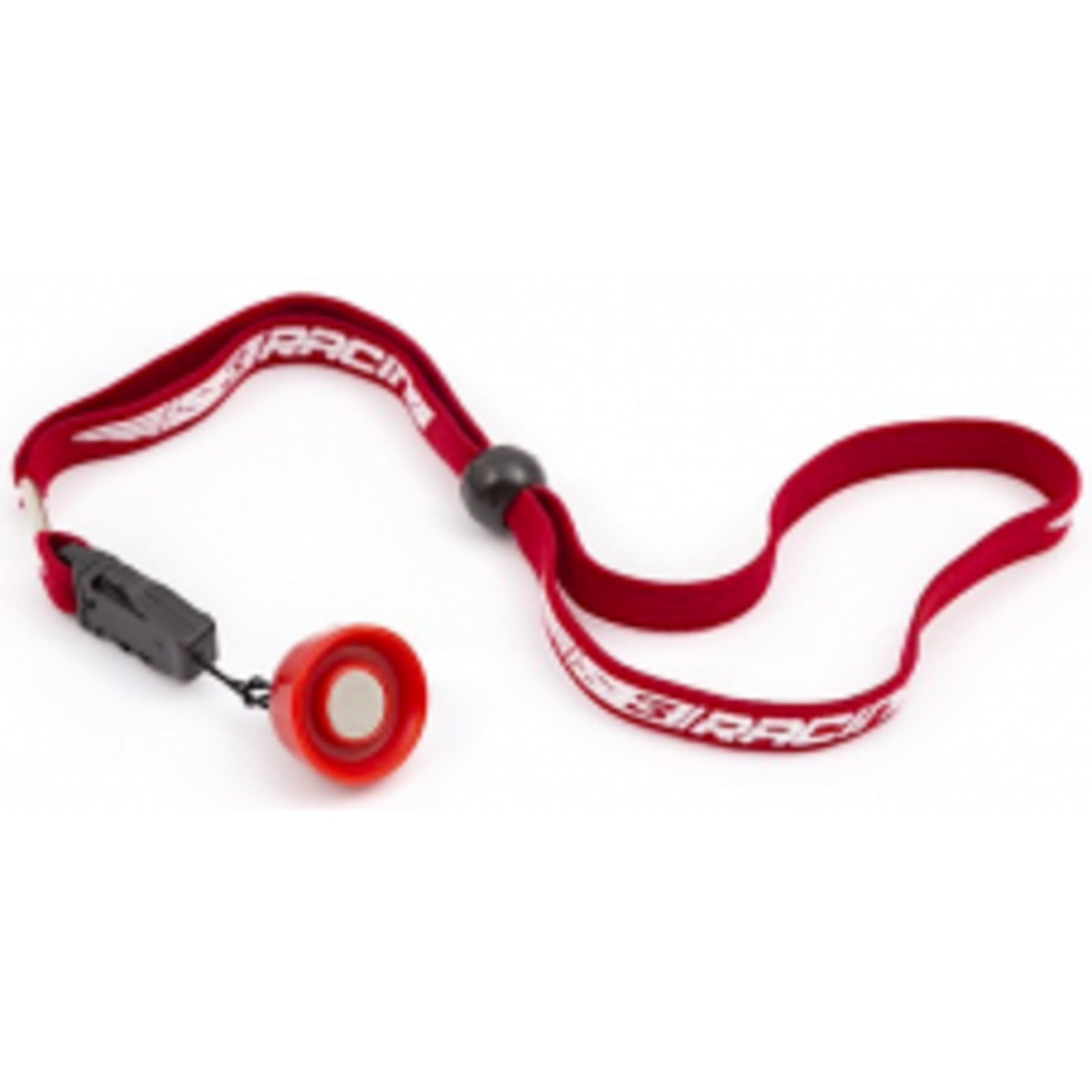 Магнит - специально разработанный предохранительный выключатель, который крепится к рулю мотоцикла и вокруг запястья гонщика. Если они разойдутся, то из-за падения шнур отсоединится, и мотобайк станет неподвижным, отключая всю мощность.