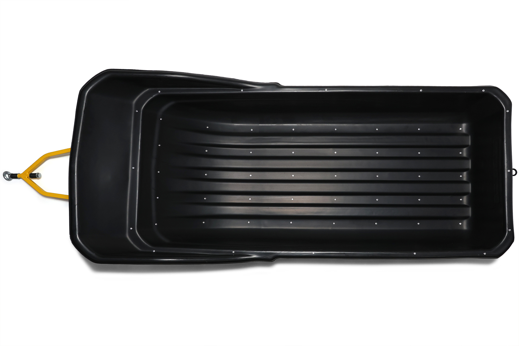 Крупногабаритные сани-прицеп для профессионального использования с снегоходами и мотобуксировщиками. Увеличенные габариты 1900×860×490 мм обеспечивают повышенную вместимость для перевозки объемных грузов. Изготовлены из сверхпрочного ПНД с УФ-стабилизацией. Полная комплектация сцепным устройством, стропами обвязки и накладными полозьями.