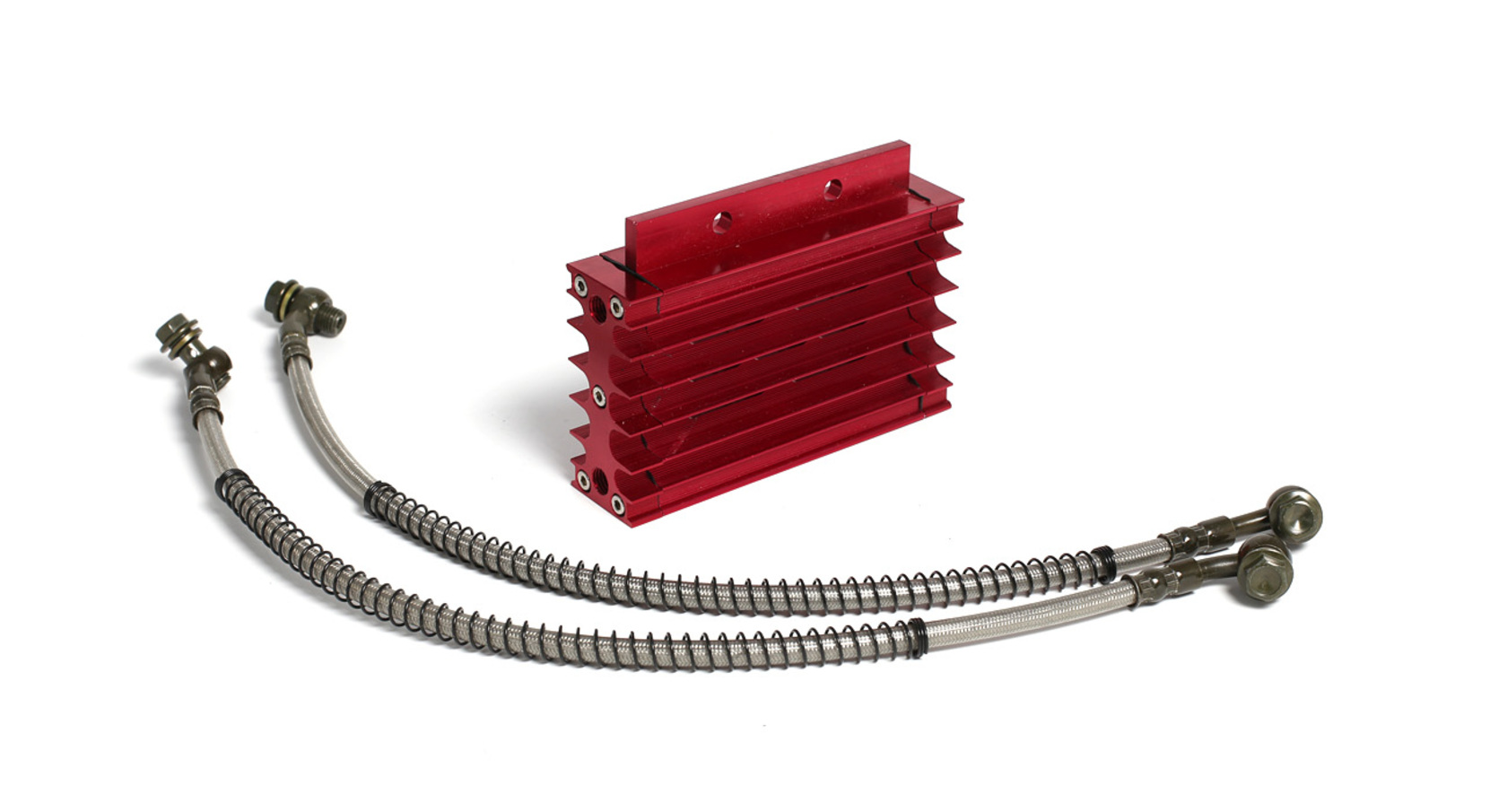 Эффективный радиатор масляного охлаждения с корпусом из алюминия, выполненный по технологии CNC, ярко-красного цвета. Предназначен для установки на 90% питбайков и мопедов с объёмом двигателя от 125 до 190 см³. Обеспечивает стабильное охлаждение масла, снижая риск перегрева двигателя и увеличивая его срок службы даже при интенсивной эксплуатации.