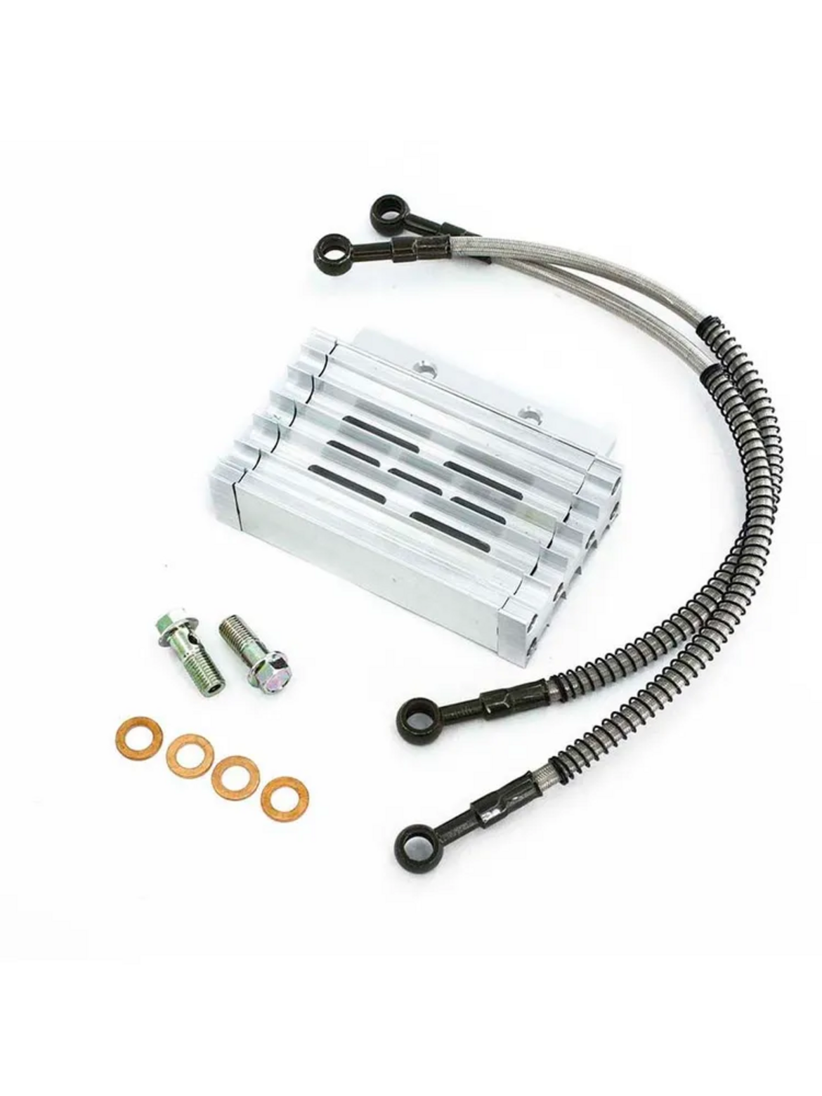 Высококачественный радиатор масляного охлаждения с корпусом из алюминия, выполненный по технологии CNC. Подходит для большинства питбайков и мопедов с объёмом двигателя от 125 до 190 см³ (совместимость — до 90% моделей). Эффективно снижает температуру масла, повышая ресурс двигателя и стабильность работы в любых условиях эксплуатации.