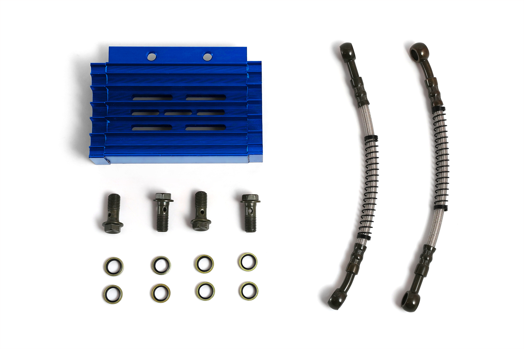 • Высококачественный комплект радиатора масляного охлаждения с корпусом из прочного CNC-обработанного алюминия, с ярким синим анодированным покрытием. Предназначен для установки на 90% питбайков и мопедов с объёмом двигателя от 125 до 190 см³. Эффективно охлаждает масло, предотвращая перегрев двигателя и увеличивая его ресурс, особенно при активной эксплуатации.