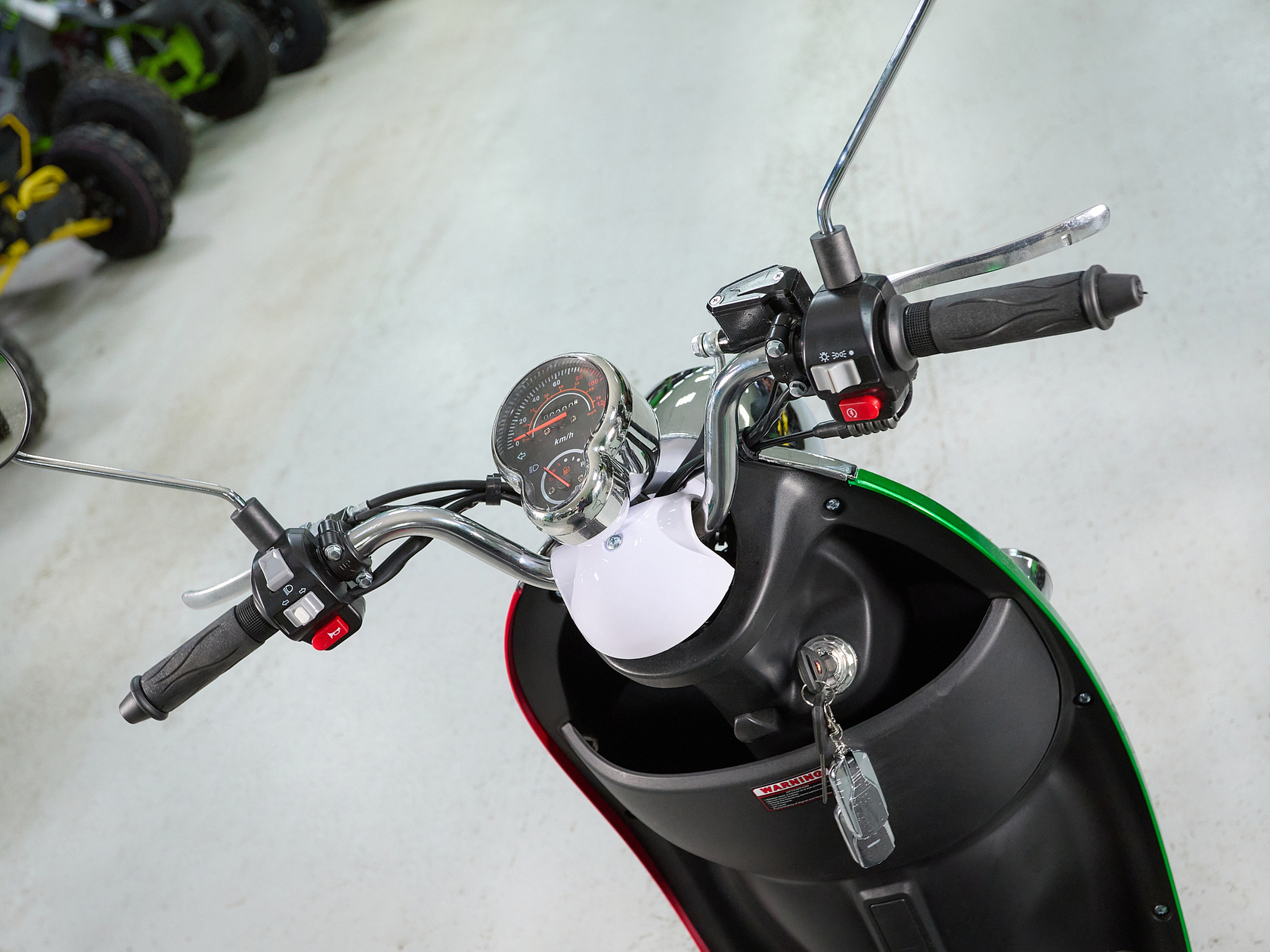 Скутер VENTO RETRO 49cc (150) сигнализация (99кг/100кг) (RED/WHITE/GREEN (Италия))
