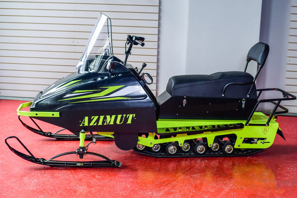 Миниснегоход Бурлак Азимут-2 - вторая версия флагманской новинки «Бурлак Азимут», имеет привлекательный внешний вид, уникальную комплектацию и при этом демократичную цену.По сравнению с первой версией, «Азимут-2» доступен в комплектации с двигателем мощностью 24 л.с., приборная панель дополнена спидометром, а для удобства управления установлены зеркала заднего вида.