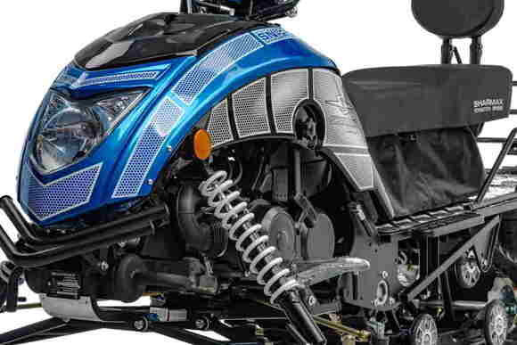 Инновации и передовые технологии, которые воплотил в данной модели снегоходов SN-210 Forester известный на мировом рынке машиностроительный концерн Sharmax достойны высших похвал. Данный снегоход обладает рядом преимуществ, что выделяет его среди других моделей, представленных на рынке. Sharmax Forester при загрузке в 150кг способен с легкостью развивать максимальную скорость в 55 км/ч по среднему снегу. Этому способствует мощный резино-тканиевый армированный гусеничный трак шириной 380 мм, обеспечивающий давление на снежный покров в глубину до 880мм и двигатель объемом 200 см³, который выдает 11 лошадиных сил.При небольшом весе снегохода всего в 130кг транспортировка техники к месту использования будет достаточно простой. А запаса хода снегохода Sharmax Forester при полном баке без дозаправки и на максимальных оборотах хватит на 80-90 км пути.Sharmax Forester в базовой комплектации оборудован информативной LCD панелью, способную предоставить подробную информацию даже при ярком солнечном свете, что весьма удобно на пересеченной местности. Также снегоход оборудован вместительным багажником и дополнительными креплениями по обеим сторонам и сзади для крепления груза и буксировки саней.Снегоход Sharmax очень маневренный и довольно простой в управлении. С ним справится даже новичок.