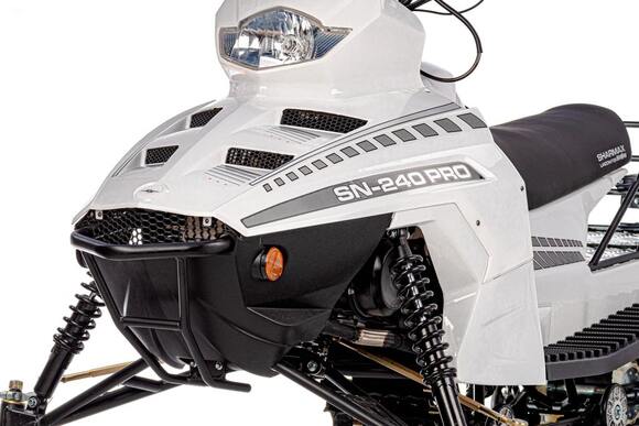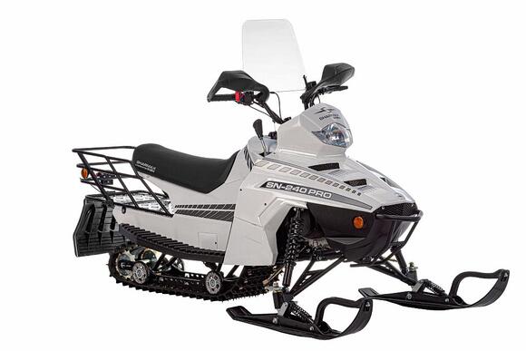 Инновации и передовые технологии, которые воплотил в данной модели снегоходов SN-240PRO Landcrafter известный на мировом рынке машиностроительный концерн Sharmax достойны высших похвал. Данный снегоход обладает рядом преимуществ, что выделяет его среди других моделей, представленных на рынке. Sharmax Landcrafter при загрузке в 170кг способен с легкостью развивать максимальную скорость в 50 км/ч по среднему снегу. Этому способствует мощный резино-тканиевый армированный гусеничный трак шириной 310 мм, обеспечивающий давление на снежный покров в глубину до 880мм и двигатель объемом 200 см³, который выдает 12 лошадиных сил.При небольшом весе снегохода всего в 170кг транспортировка техники к месту использования будет достаточно простой. А запаса хода снегохода Sharmax Landcrafter при полном баке без дозаправки и на максимальных оборотах хватит на 80-90 км пути.Sharmax Landcrafter в базовой комплектации оборудован информативной LSD панелью, способную предоставить подробную информацию даже при ярком солнечном свете, что весьма удобно на пересеченной местности. Также снегоход оборудован вместительным багажником и дополнительными креплениями по обеим сторонам и сзади для крепления груза и буксировки саней.Снегоход Sharmax очень маневренный и довольно простой в управлении. С ним справится даже новичок.