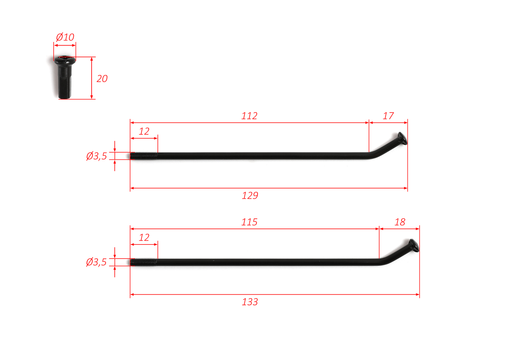 • Длина спицы — 16шт* 133 мм, 16шт*129мм