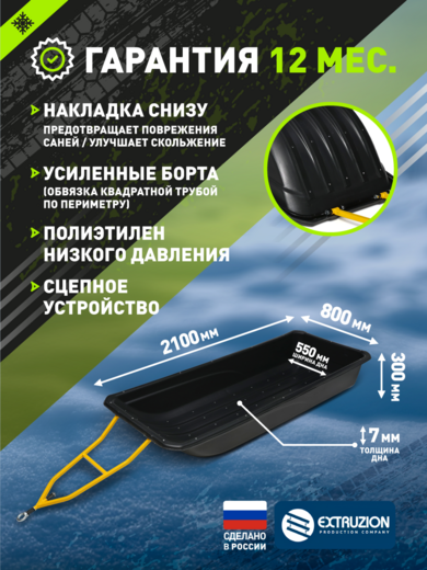 Санки ледянки для катания с горок с люверсами (сани волокуши) pitbikemarket.ru